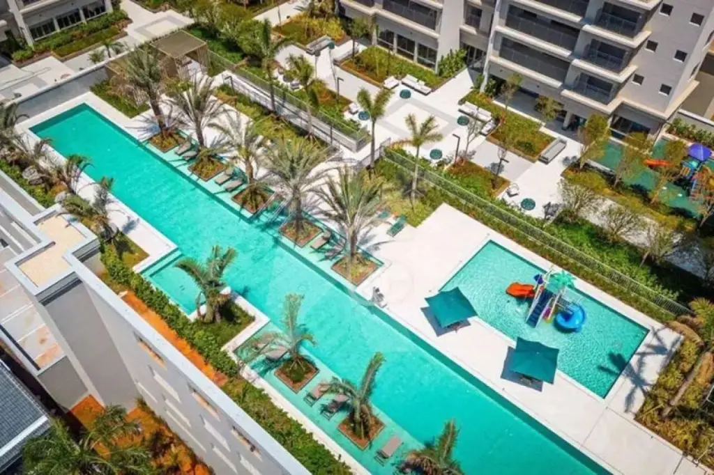 O condomínio é um verdadeiro diferencial: implantado em um terreno de aproximadamente 10.000 m², oferece uma área de lazer completa, com diversas quadras esportivas, complexo de piscinas, salões de festas infantil e adulto, além de quadra de beach tennis.