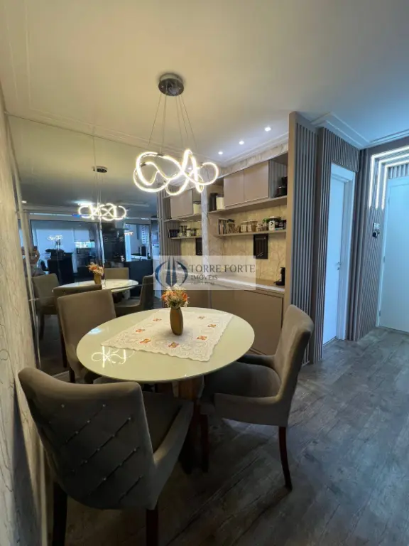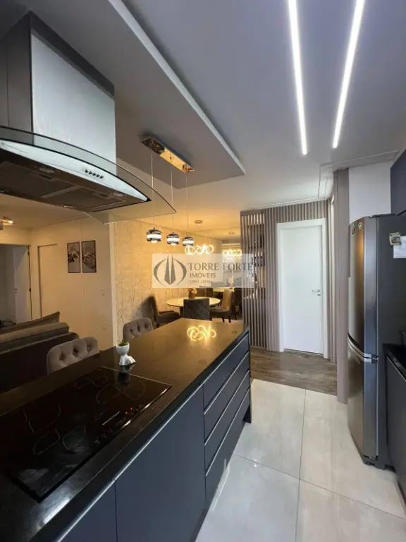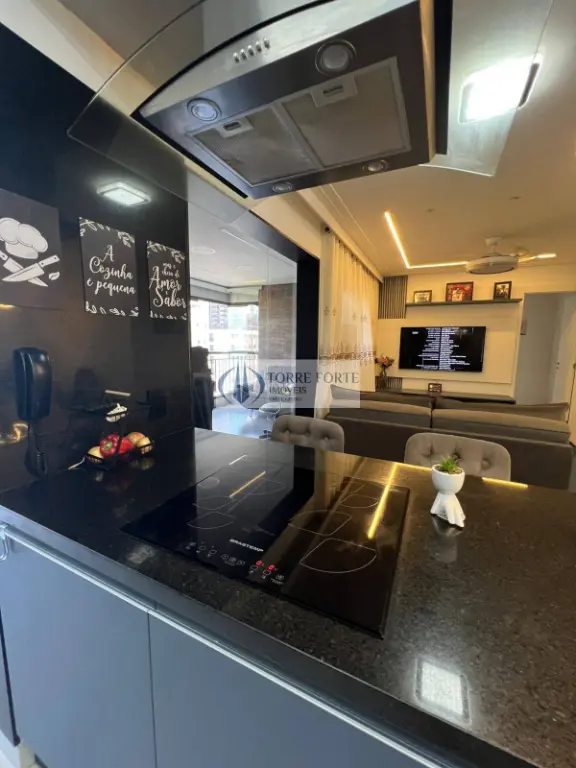 2 suítes, Sala com living aberto, Cozinha com ilha, equipada com: Cooktop de indução Brastemp Forno e micro-ondas embutidos Brastemp, Aquecedor a gás (Rheem), Varanda gourmet com churrasqueira a carvão, Piso vinílico, Torneira com água quente na cozinha, 3 Banheiros com infraestrutura para água quente, Persianas instaladas, área de serviço.