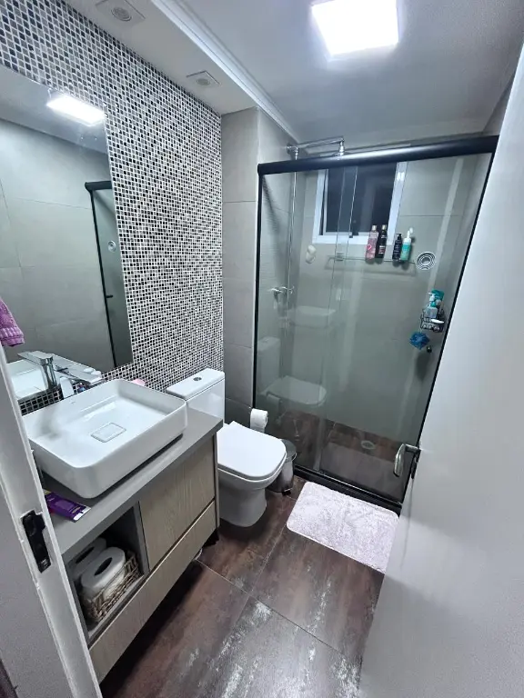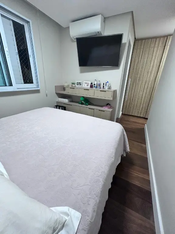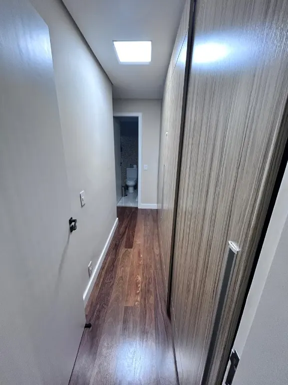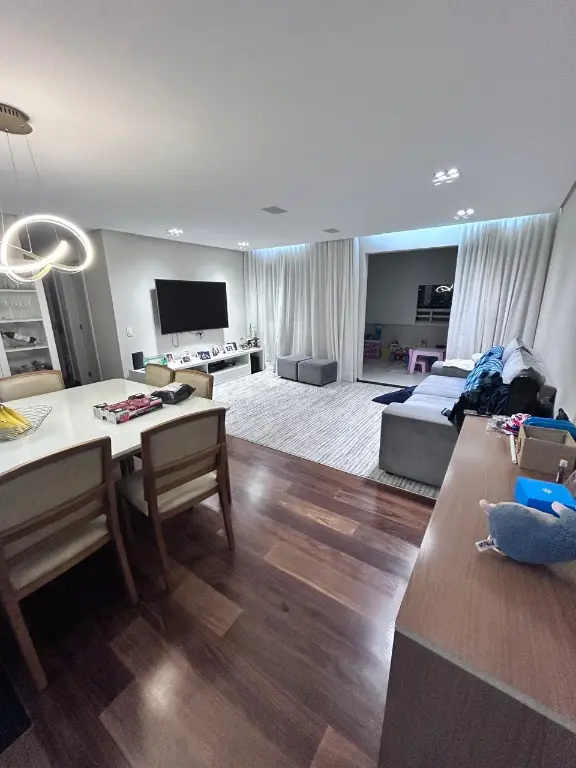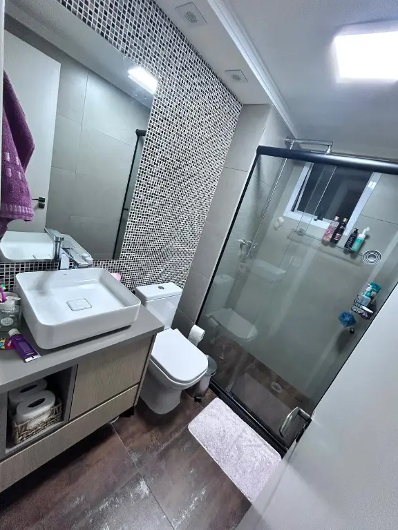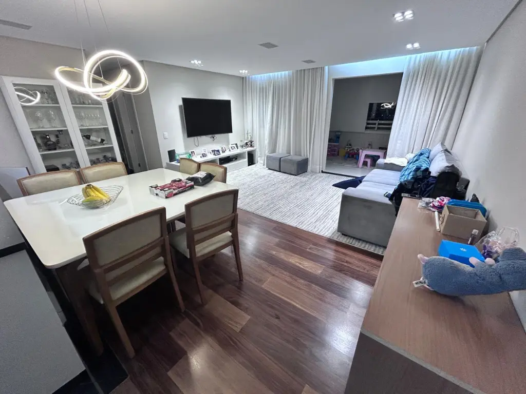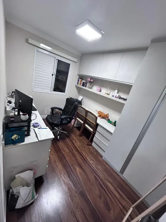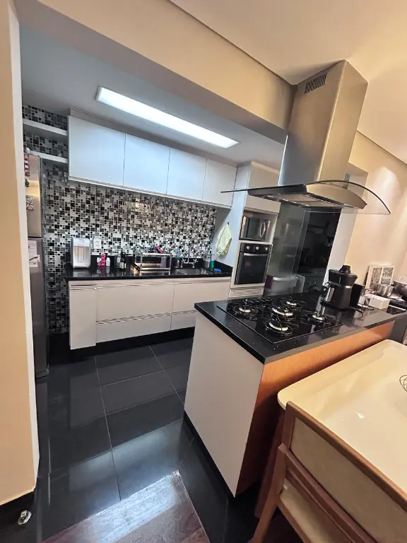 sao 100mts sendo 3 dormitorios, suite com closet, escritorio, cozinha americana, area de serviço, wc social, lavabo e ampla varanda gourmet com fechamento em vidro e persianas.
