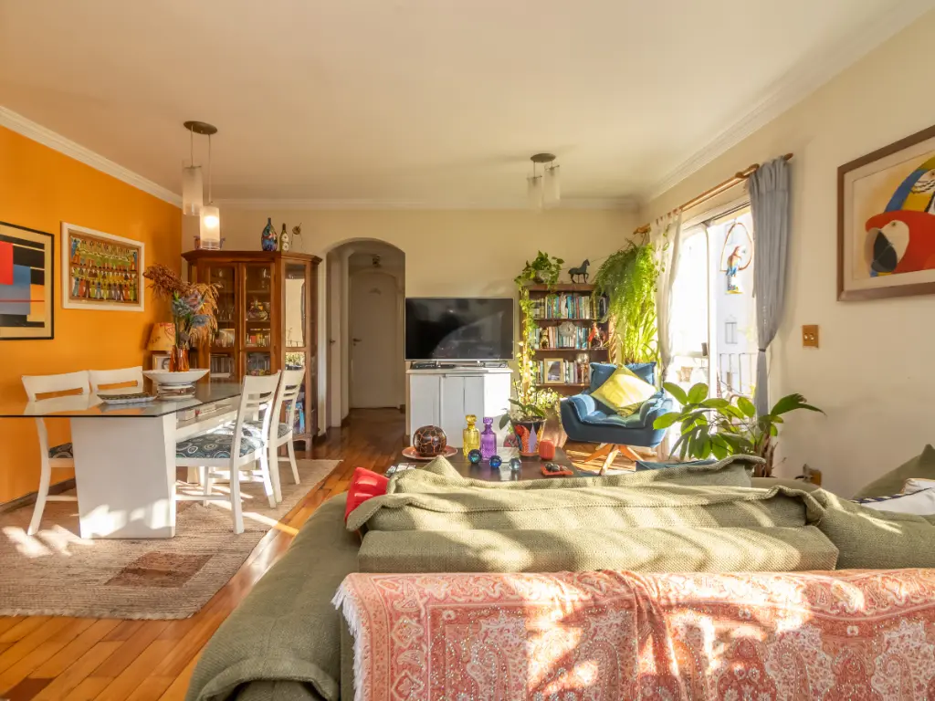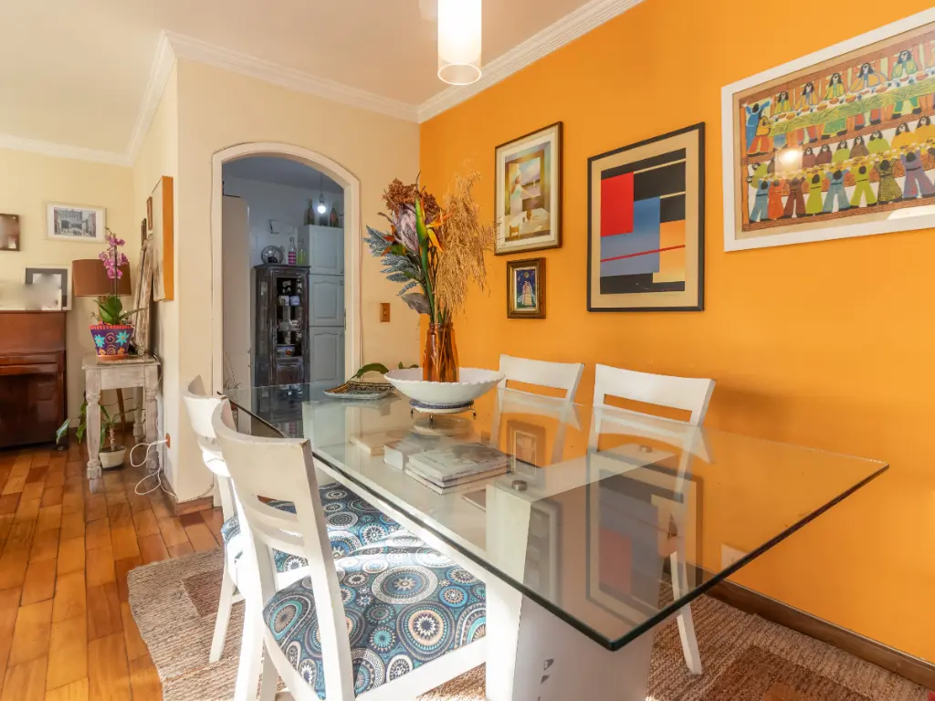 A sala ampla oferece excelente iluminação natural e integração a uma varanda encantadora - perfeita para relaxar ao entardecer, ler, tomar um café especial ou receber amigos em momentos descontraídos. O lavabo agrega sofisticação ao ambiente social, garantindo ainda mais comodidade.