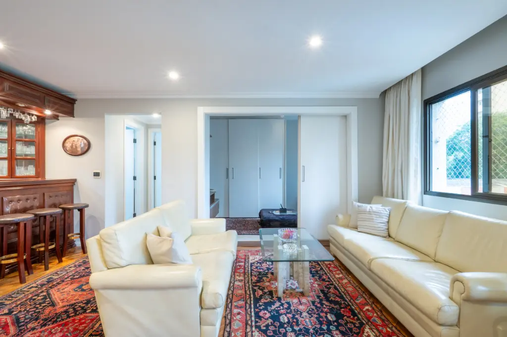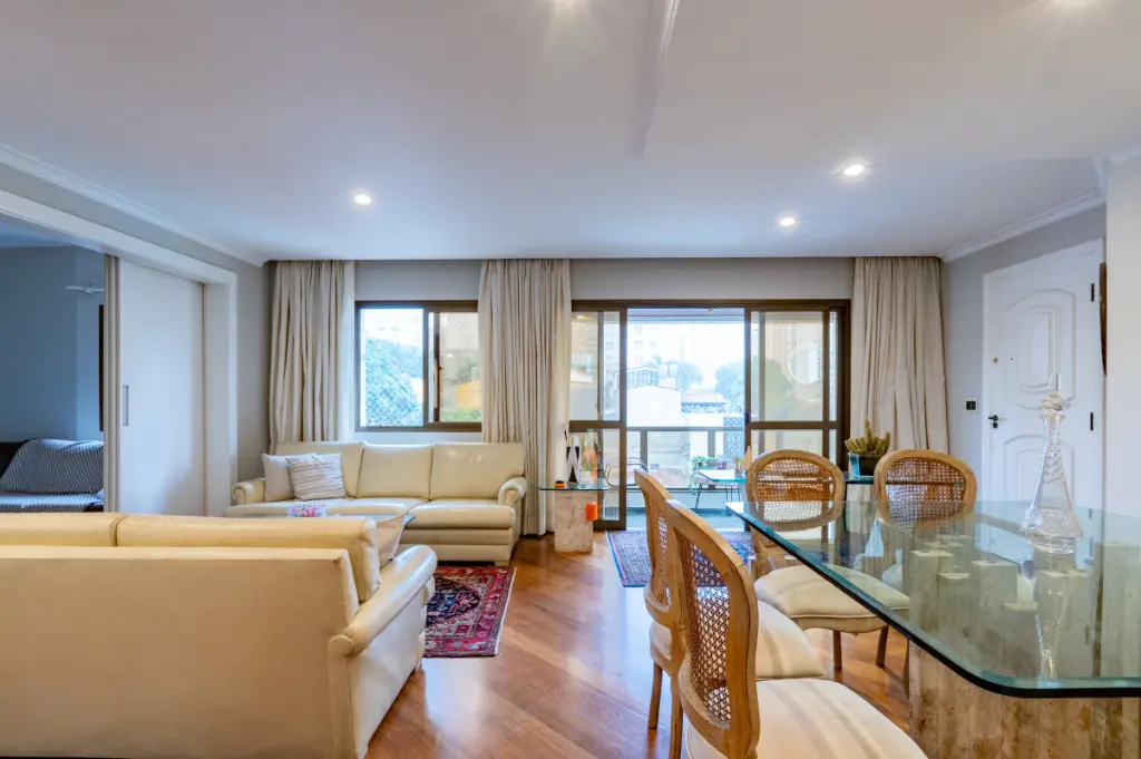 Apartamento com área privativa de 131 m², originalmente com 4 dormitórios, atualmente configurado com 3 dormitórios, sendo 2 suítes e sala ampliada. A ampliação é reversível, voltando ao quarto extra conforme necessidade. Possui 2 vagas de garagem. A sala ampliada com varanda oferece ambiente generoso para living com home office ou ainda para receber e conviver com conforto. Imóvel pronto para morar ou rentabilizar.