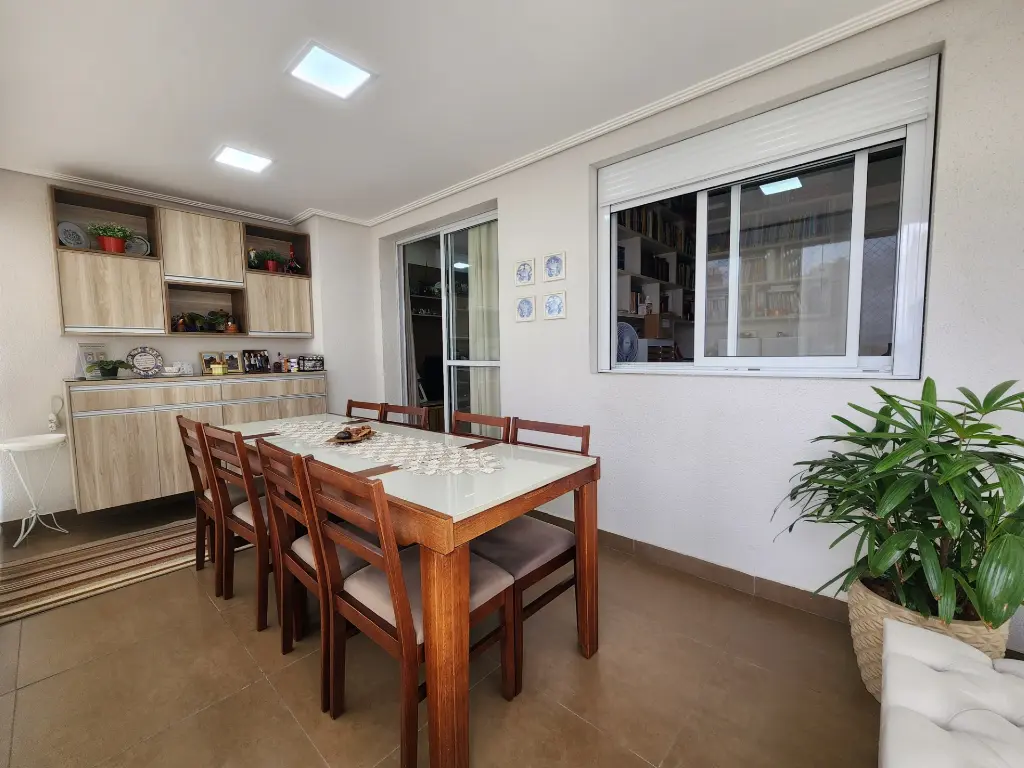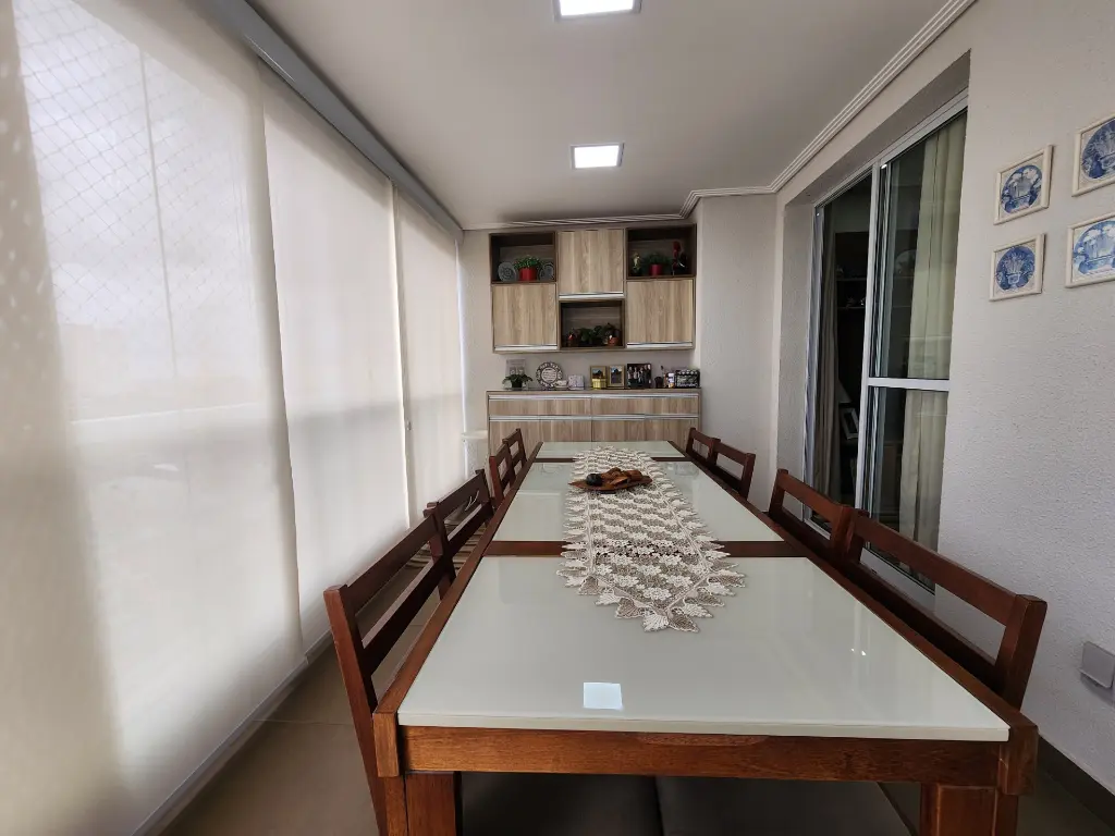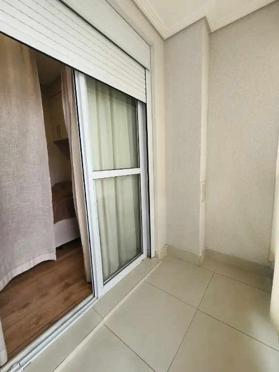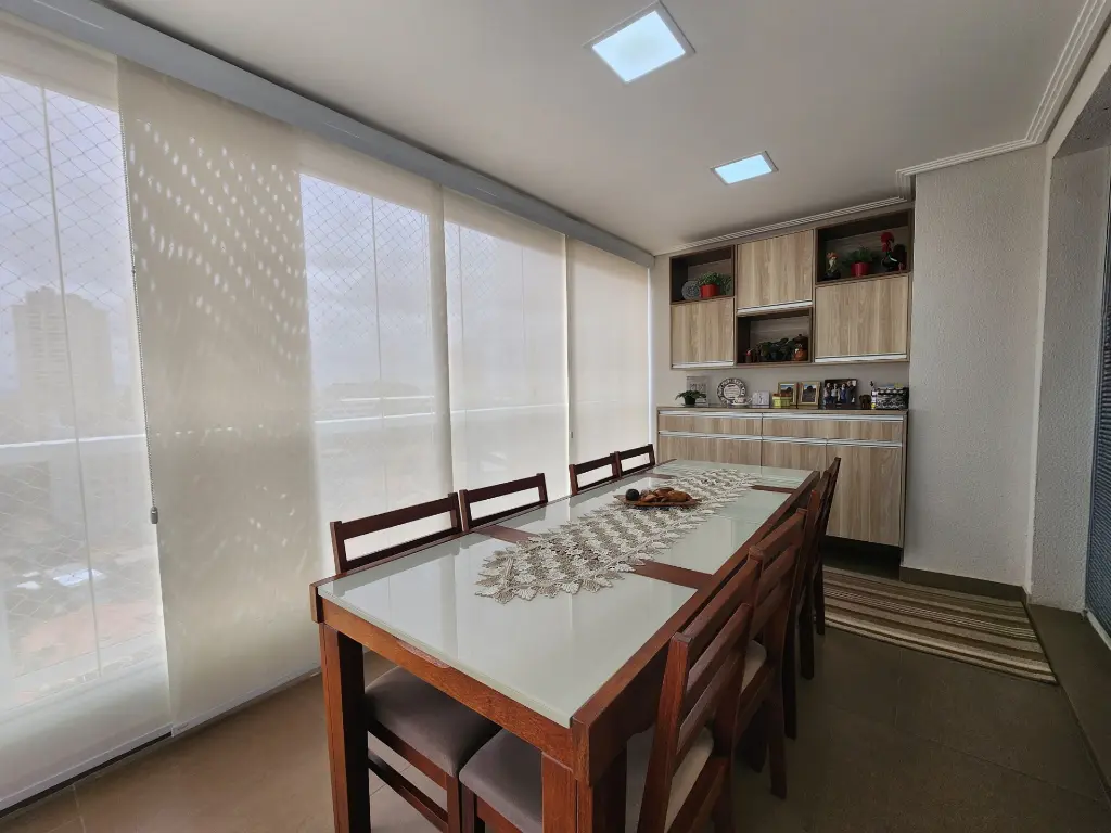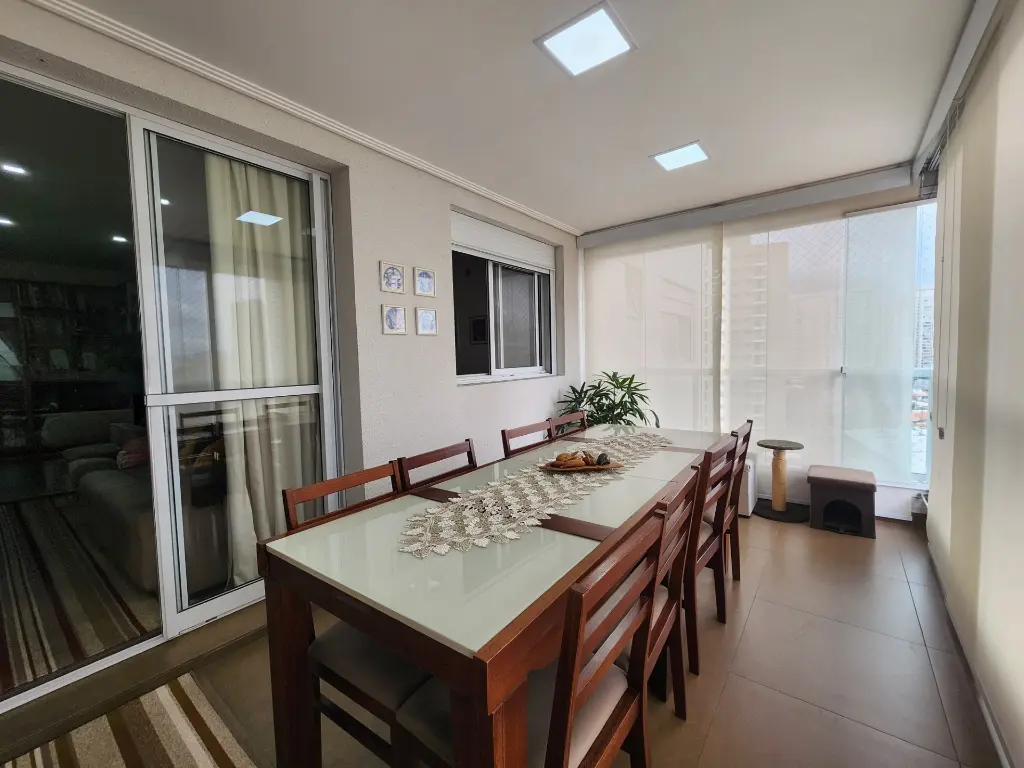 Varanda grill já fechada com vidros.