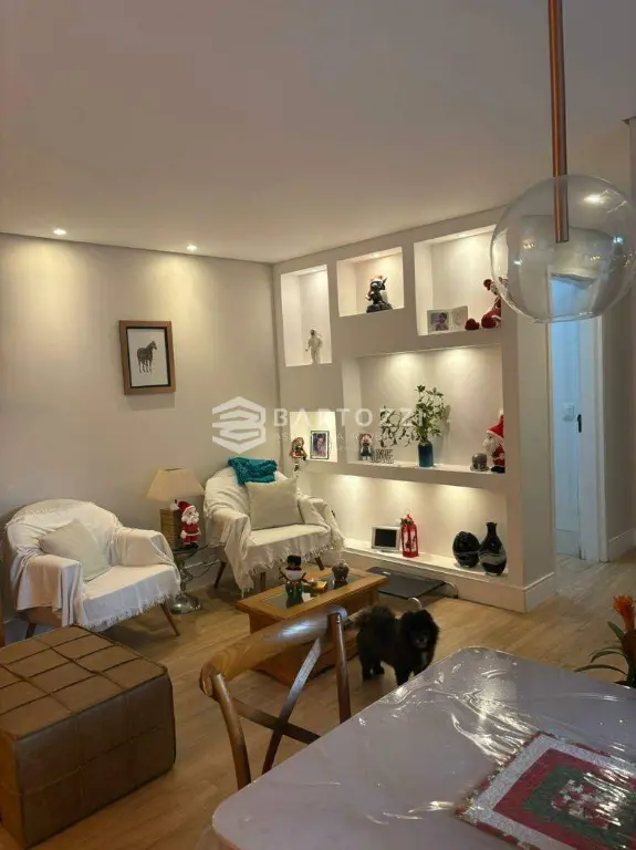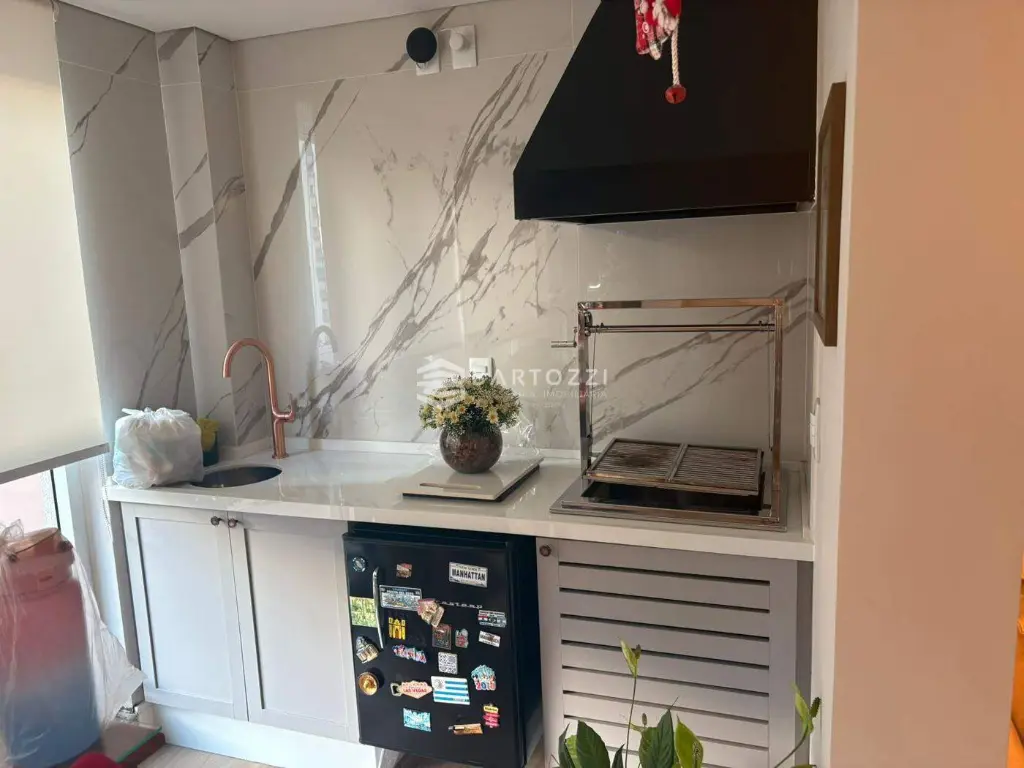 Lindo apartamento, finamente decorado, com armários planejados, sala ampla integrada à sacada gourmet com lareira, cozinha planejada e lavanderia com armários. Condomínio com lazer completo, em localização privilegiada, em um dos melhores bairros da cidade, próximo à Escola 28 de Julho, USCS, mercados, Swift, drogarias e com fácil acesso a São Paulo e Santo André.
