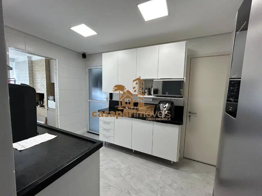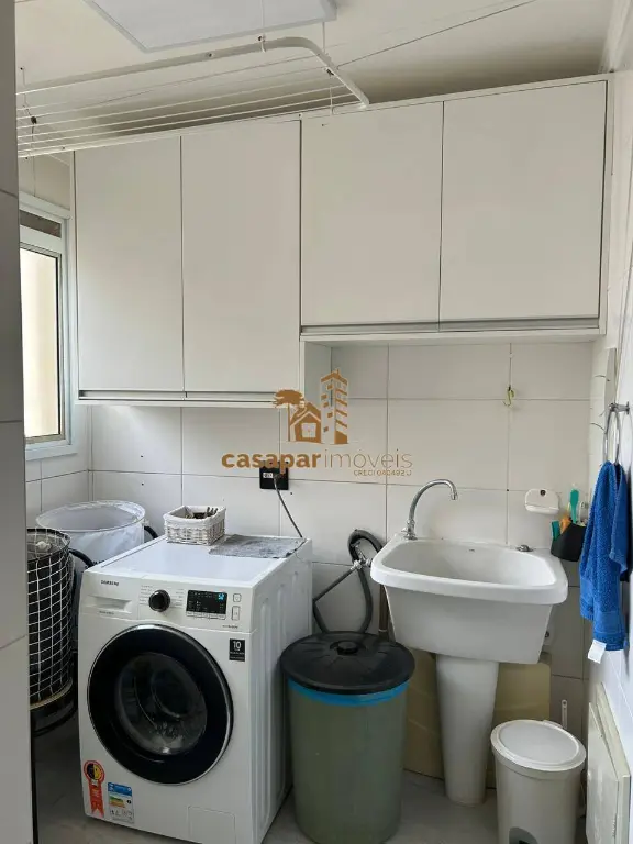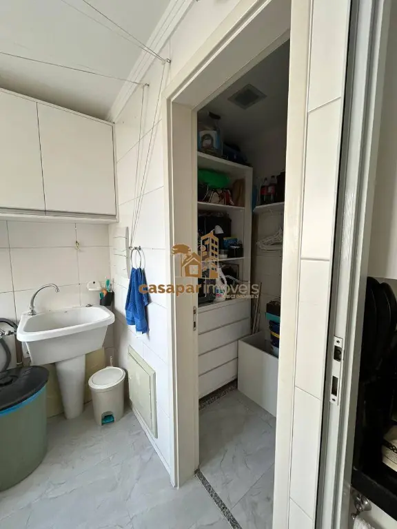 Cozinha com planejados, área de serviço com banheiro