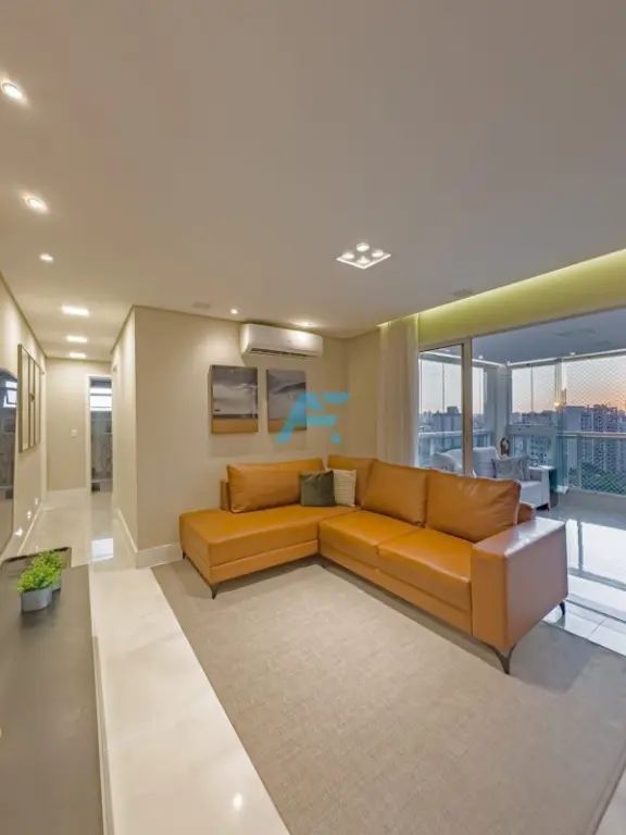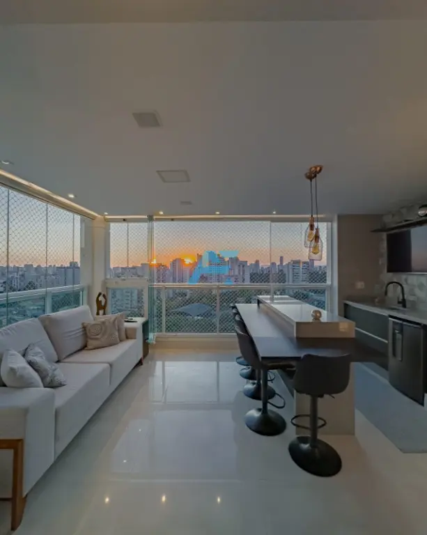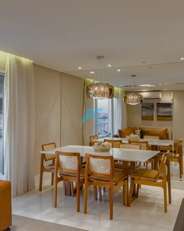 São 109m² divididos em 3 dormitórios (suíte), 1 lavabo, sala ampla para 2 ambientes integrada com a varanda gourmet envidraçada, cozinha planejada, área de serviço e 2 vagas de garagem. Belíssimo apartamento, vista para sol da manhã, repleto de armários embutidos, piso frio, acabamentos de gesso no teto e hall decorado. Pronto para morar.