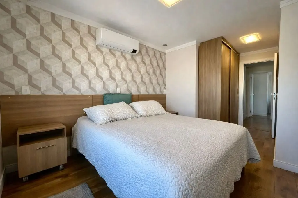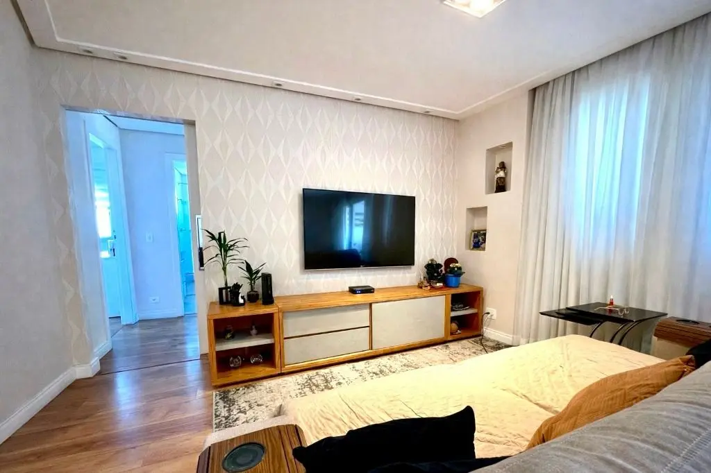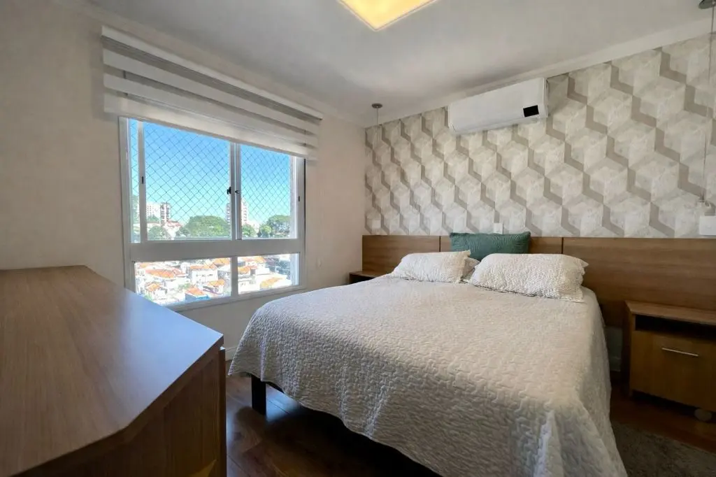 Imóvel com 127m², sendo 3 dormitórios, 1 suíte com ar condicionado e 1 dormitório com o banheiro revertido a closet podendo retornar a banheiro, sala ampla com ar condicionado para 3 ambientes, com ótimo espaço, arejado e iluminação natural, varanda gourmet com churrasqueira e envidraçamento para mais segurança com bela vista, cozinha planejada com móveis de ótima qualidade, e uma vista incrível do campo de marte, um dos pontos mais conhecidos da região, lavanderia com espaço para armazenamento e despensa com lavabo.