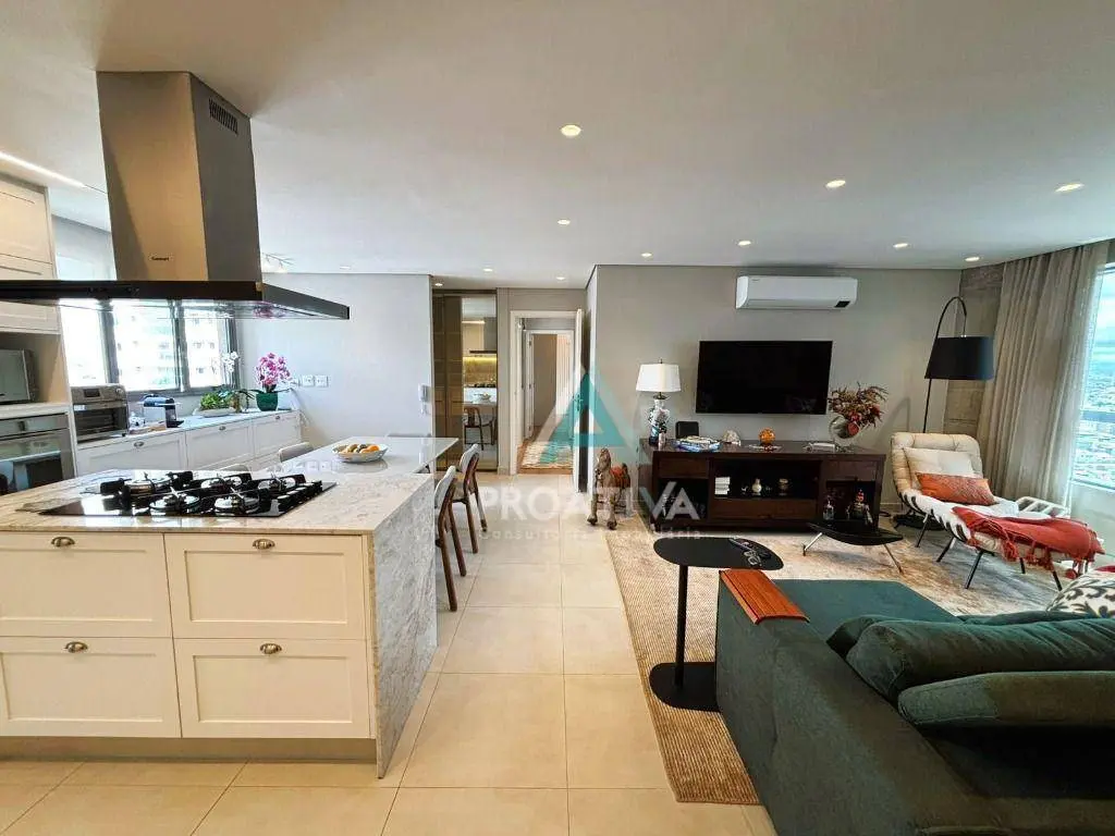 Living amplo para 3 ambientes integrado à cozinha conceito aberto