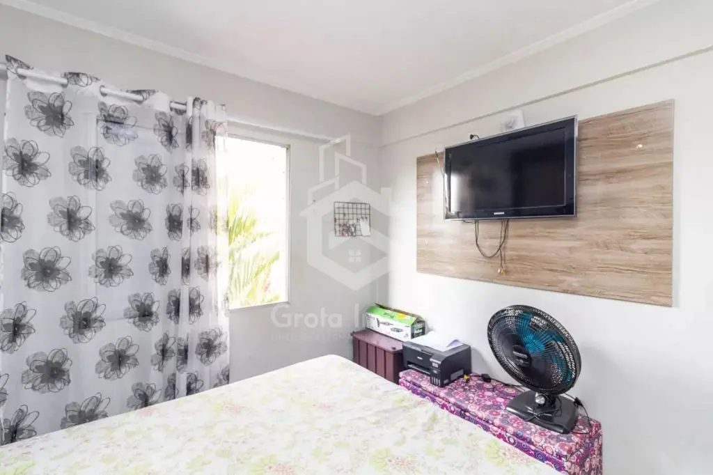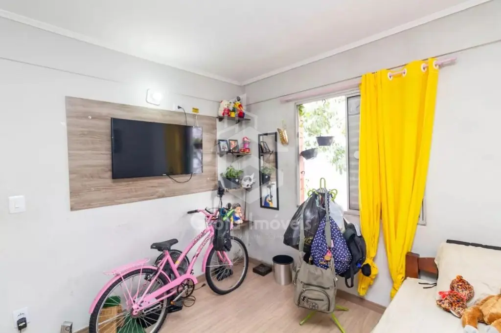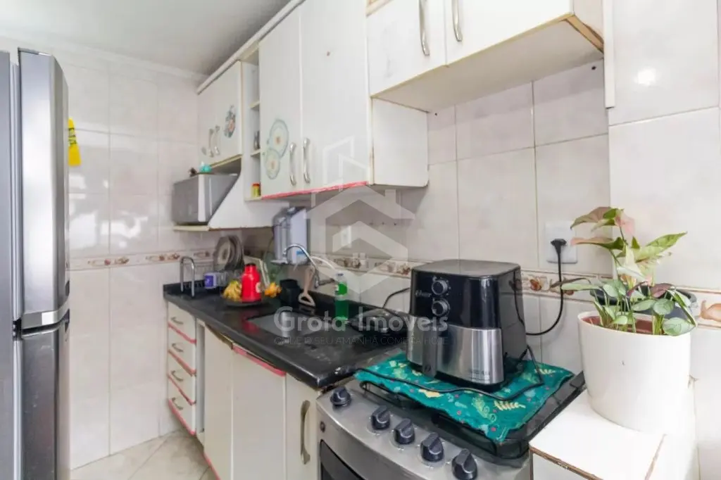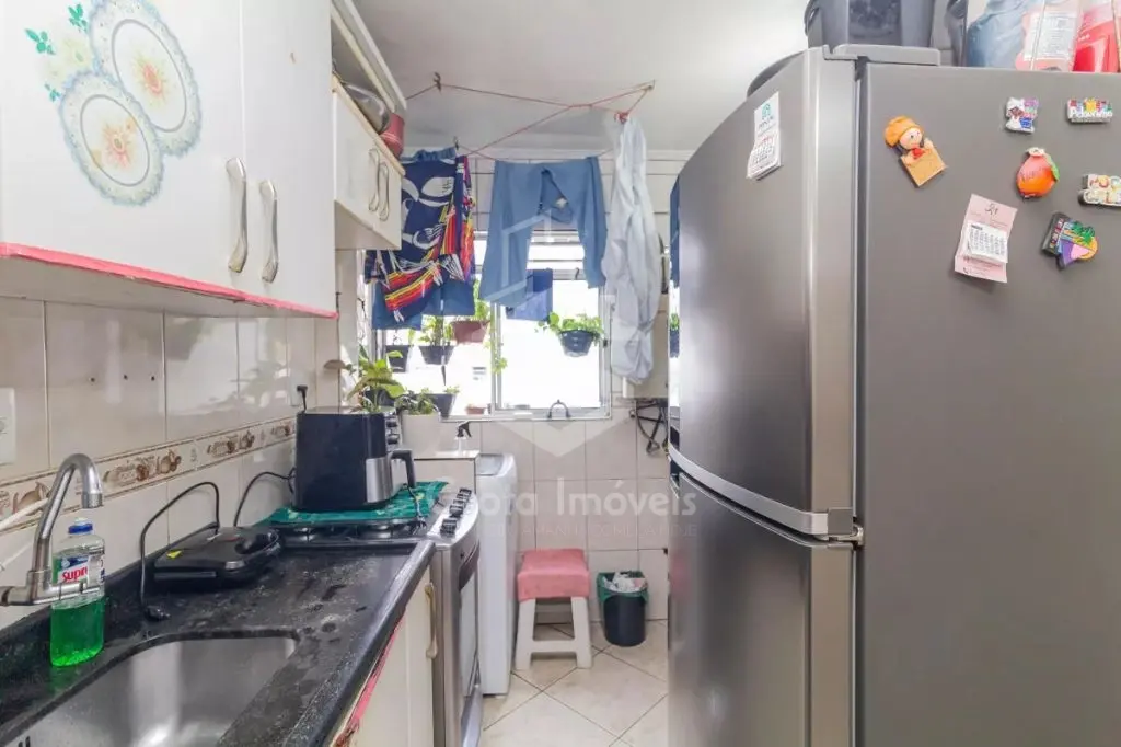 Sala, cozinha, 2 dormitórios, 1 com planejados, lavanderia e banheiro com box.