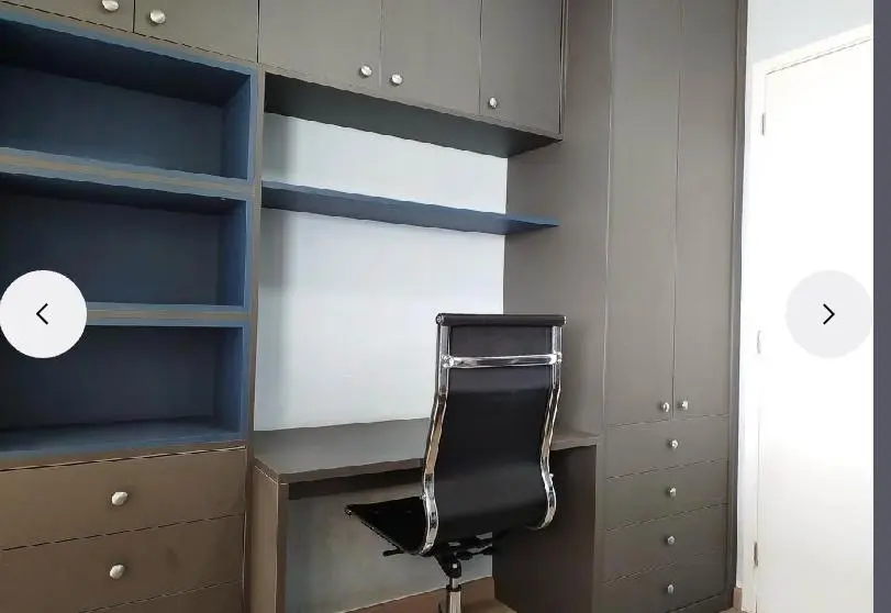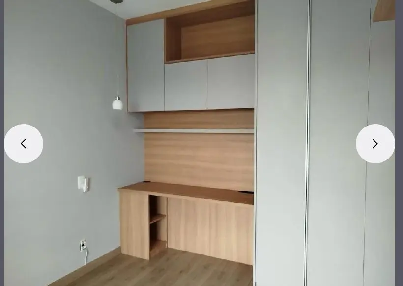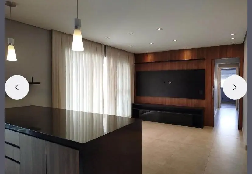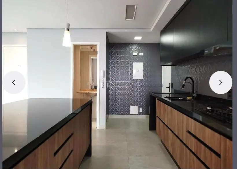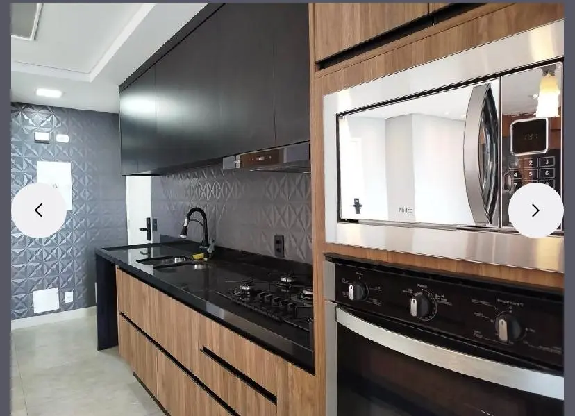 Uma cozinha elegante, com móveis planejados e embutidos, além de uma charmosa bancada americana que integra o ambiente e permite integração com a sala. O apartamento é semi-mobiliado, pronto para morar!