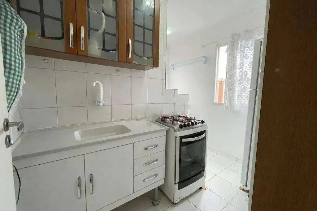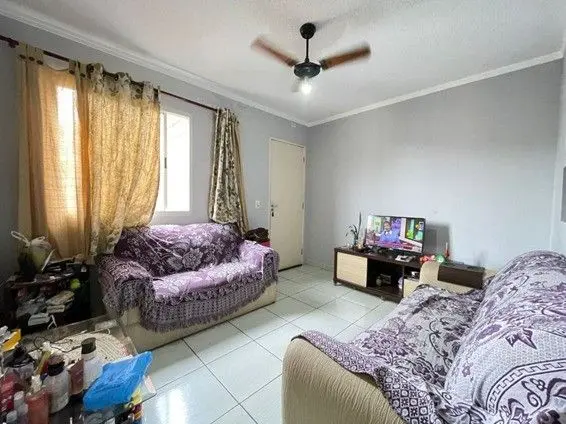 Apartamento pronto para morar de 48 m² distribuío em 2 dormitórios, sala para dois ambientes, cozinha, decoração do teto em gesso, área de serviço separada, 1 banheiro social, ambientes arejados com ventilação natural e 1 vaga de garagem descoberta.