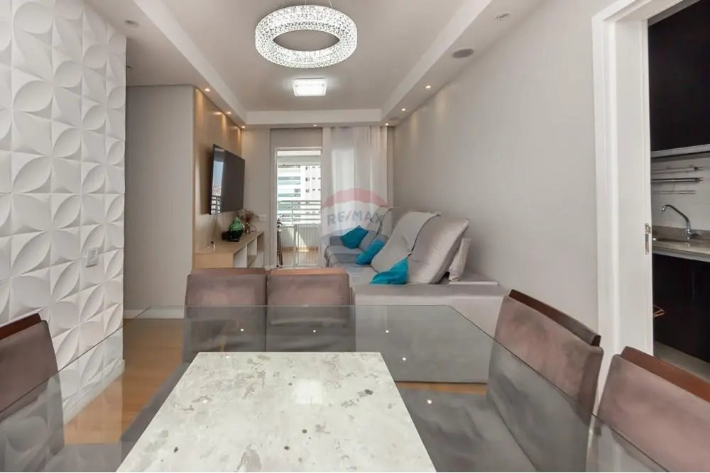Com 83m², o imóvel oferece um living integrado à varanda, cozinha equipada (cooktop, forno e exaustor), 3 dormitórios (sendo 1 suíte), 2 banheiros, móveis planejados, além de 2 vagas de garagem e depósito privativo.
