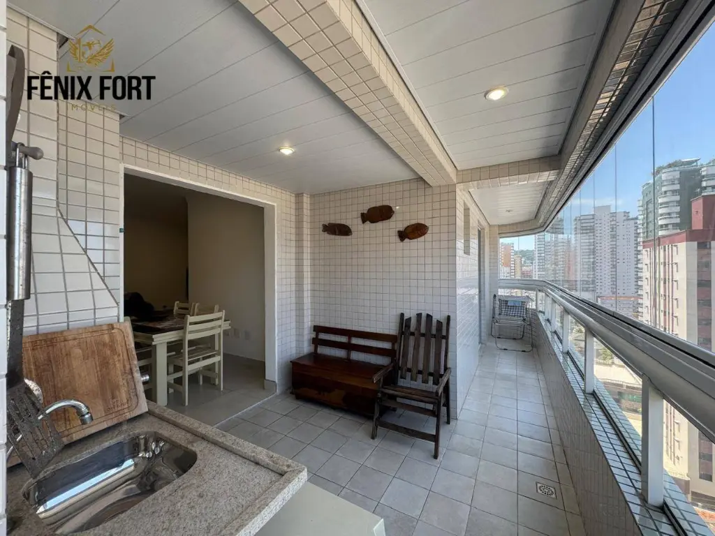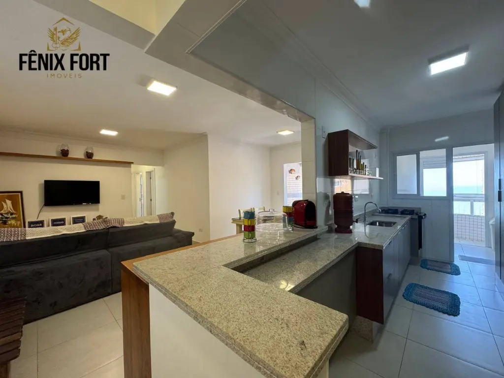 O imóvel conta com 124,00m² de área útil, distribuídos em 3 dormitórios sendo 3 suítes, sala com sacada gourmet VISTA MAR, 01 lavabo, cozinha espaçosa planejada, área de serviço com banheiro e 3 vagas de garagem sendo 2 livres .