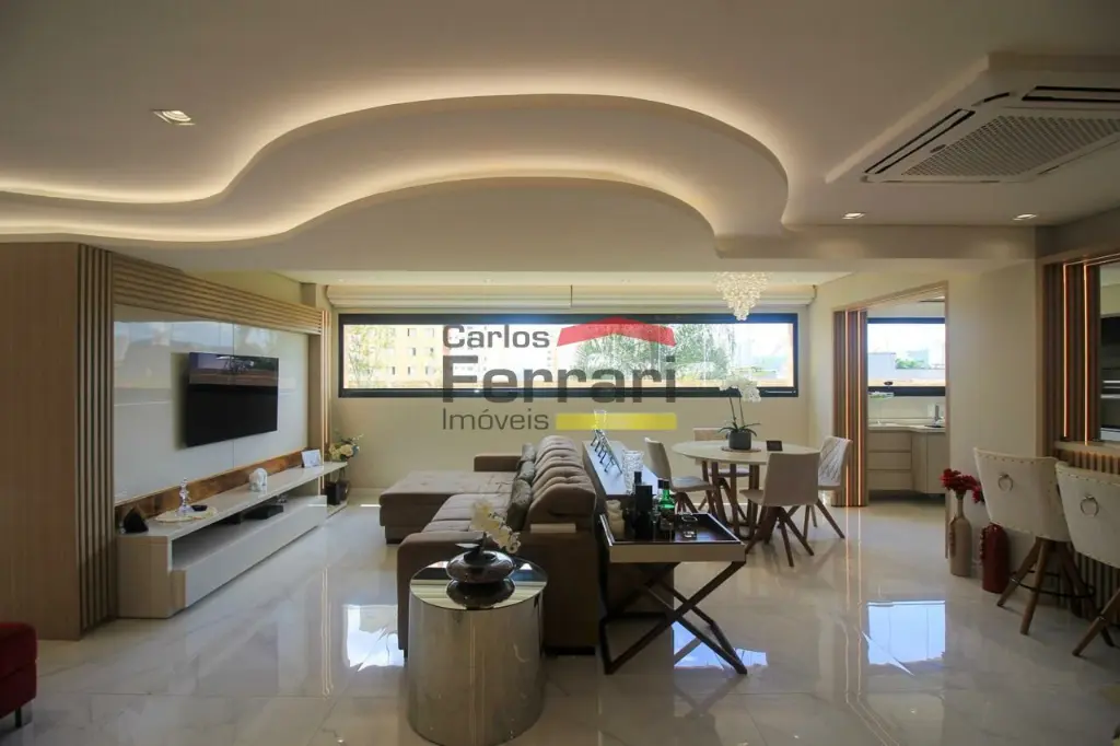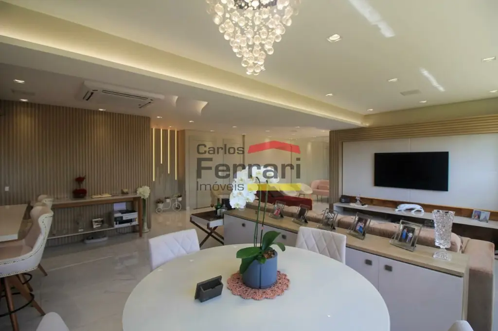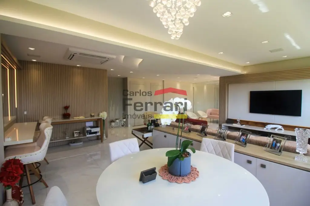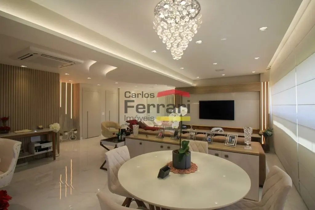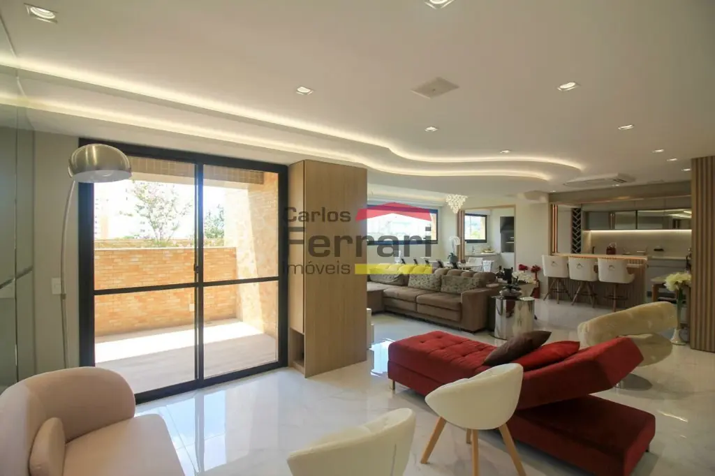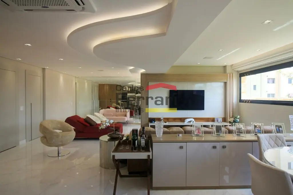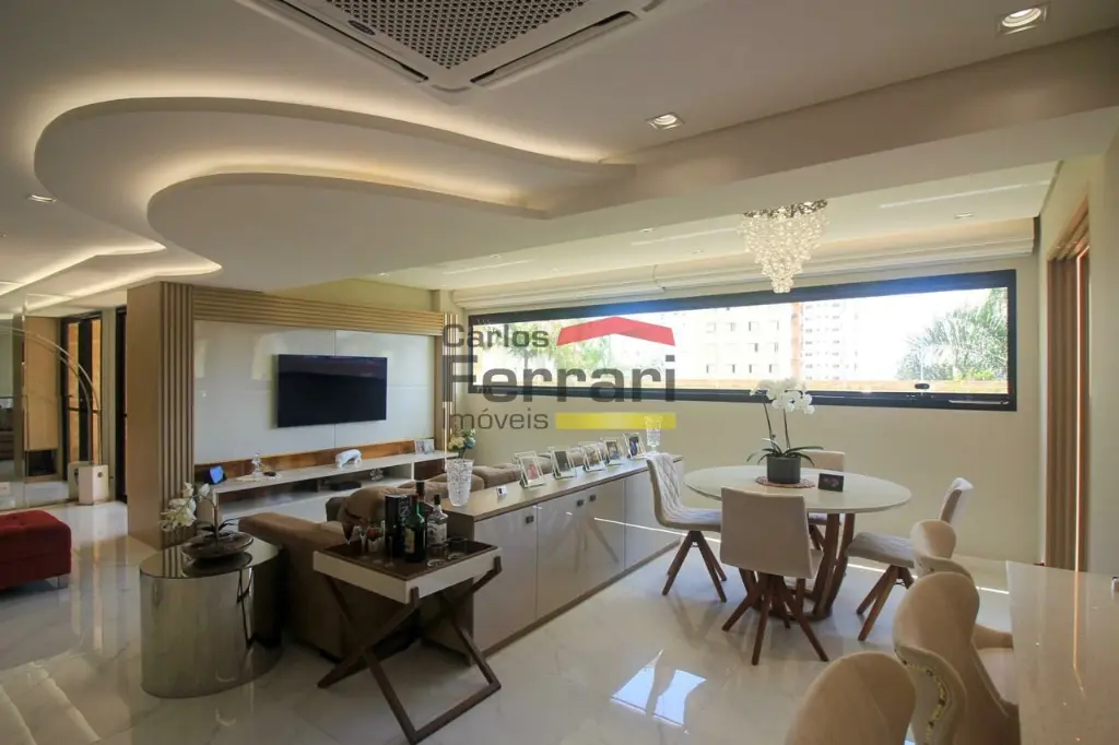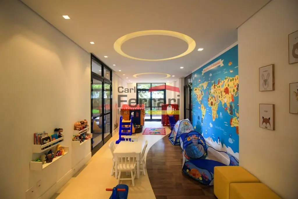 A planta conta com sala para 2 ambientes com integração ao espaço externo, sanca em gesso, projeto de iluminação e sistema de som embutido. A varanda garden oferece área gourmet e quintal com ótima incidência solar. Cozinha planejada com armários sob medida, funcional e bem distribuída. São 3 dormitórios, sendo uma suíte master com closet ampliado, além de escritório que atende ao home office. O imóvel possui lavabo, banheiros bem acabados, ar-condicionado central, área de serviço independente e rico em armários em todos os ambientes.