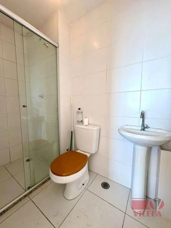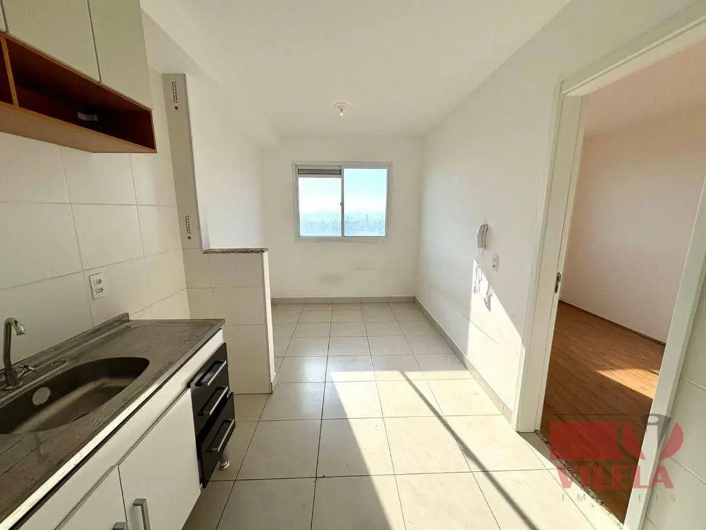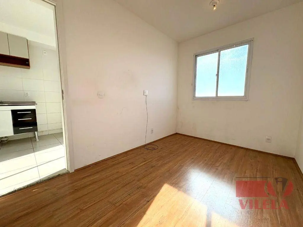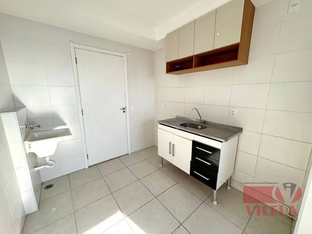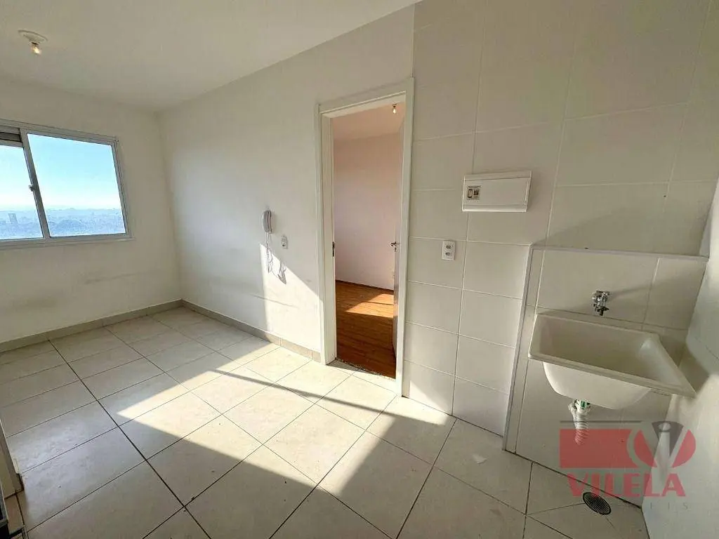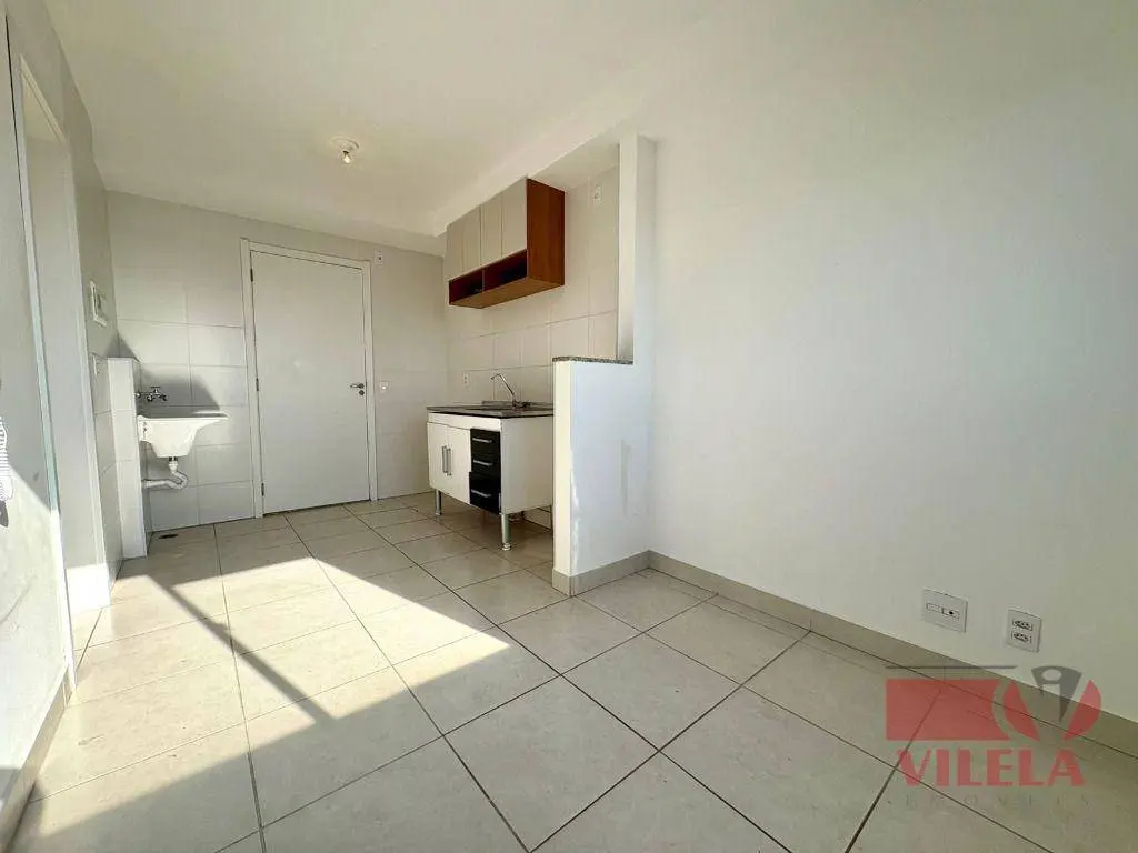 1 dormitório, sala, cozinha, área de serviço e banheiro com box.