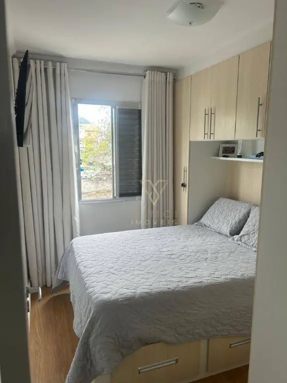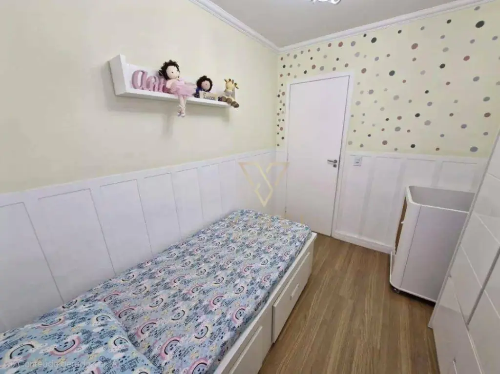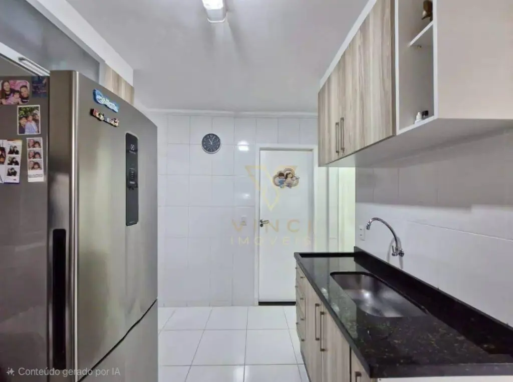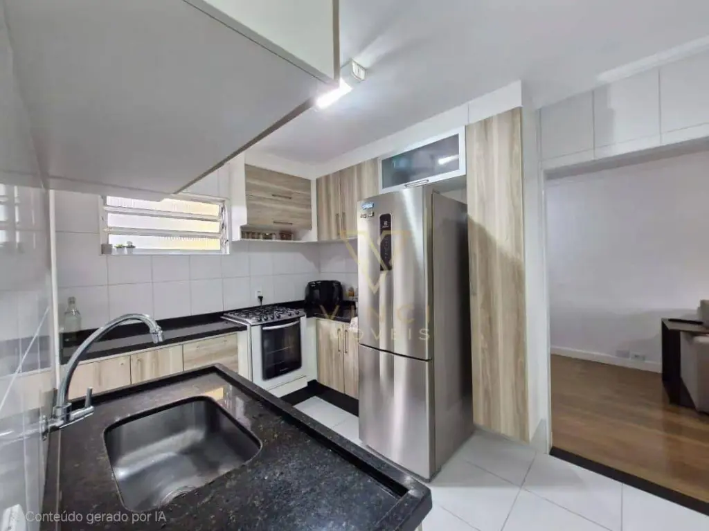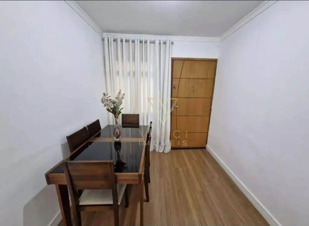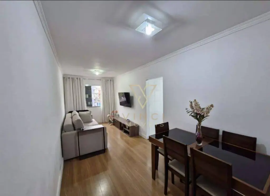Apartamento aconchegante com 56m², distribuídos em sala, cozinha, 2 dormitórios, 1 banheiro, área de serviço e 1 vaga de garagem coberta.