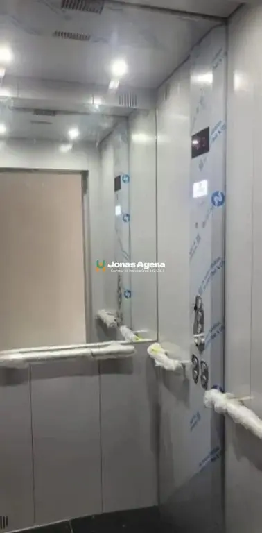 Prédio de 3 andares com elevador, área livre no último andar.