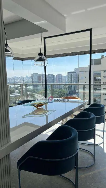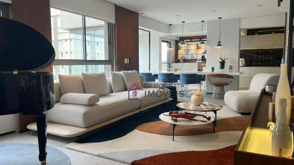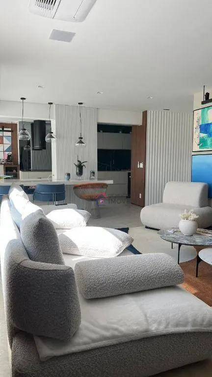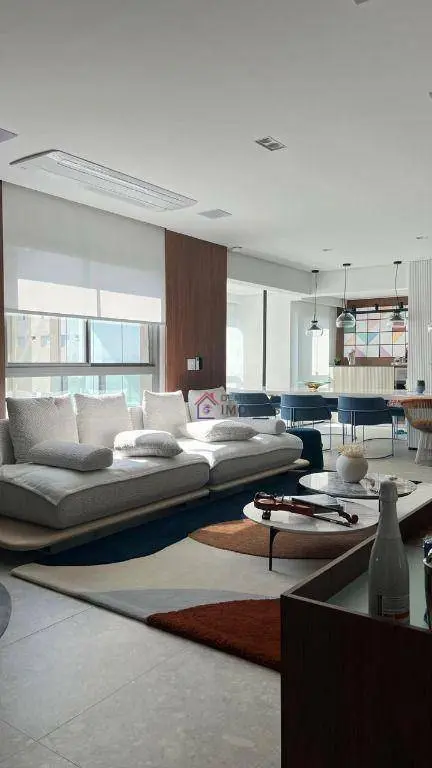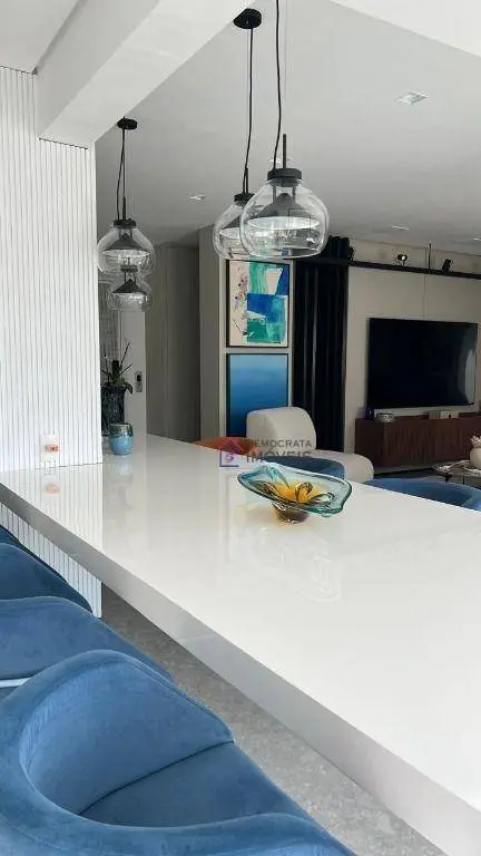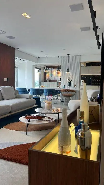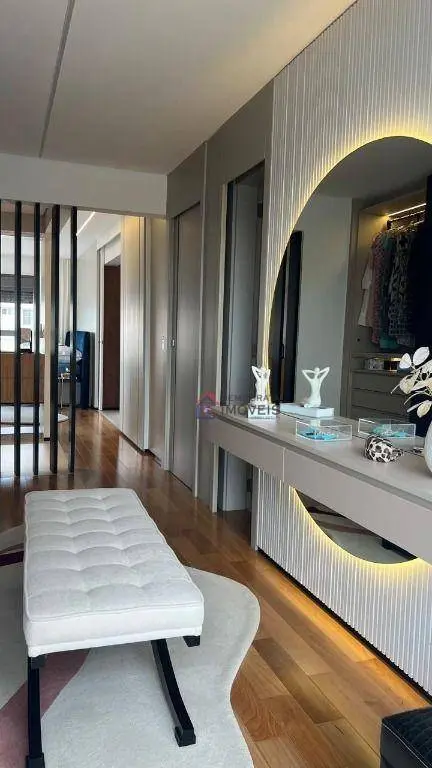 Apartamento de alto padrão com 153m² de área útil. Possui 3 suítes com planejados e sacada, ampla sala com 3 ambientes integrada com varanda gourmet, lavabo, cozinha planejada, despensa, área de serviço com banheiro e 3 vagas de garagem.