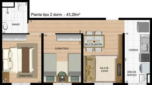 Apartamento com ótima distribuição, composto por 2 dormitórios, sala para dois ambientes, cozinha, banheiro, área de serviço e 1 vaga de garagem. Imóvel que aceita financiamento.