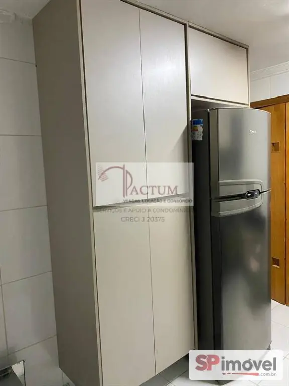 A cozinha possui armários planejados, lavanderia funcional e banheiro completo.