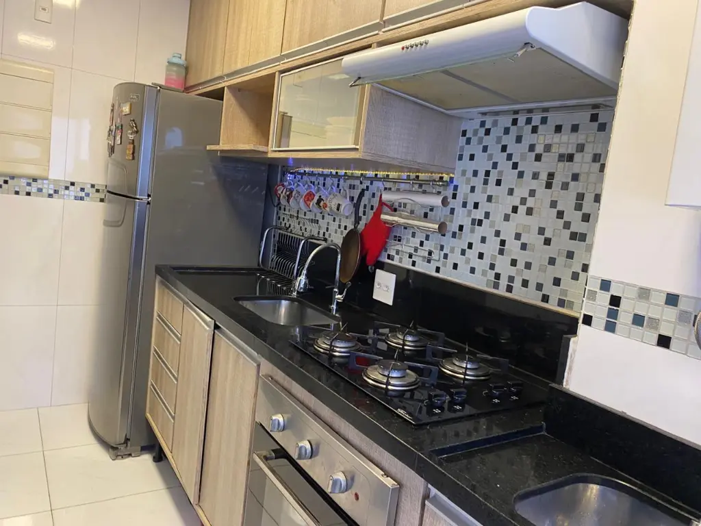 Apartamento reformado, 5 andar, com planejados na cozinha, central à gás, banheiro com box de vidro, piso frio laminado, janelas em alumínio, condomínio com lazer completo, piscina adulto e infantil, sauna, academia, quadra esportiva, mini mercado na garagem, 3 pavimentos de vagas no subsolo, 02 elevadores, 1 de serviços e outro social, água, luz e gás individual, portaria 24h com ronda noturno, sistema de segurança com câmeras de segurança, ponto de ônibus em frente ao condomínio, aceita financiamento bancário, agende sua visita com nossos corretores !!!