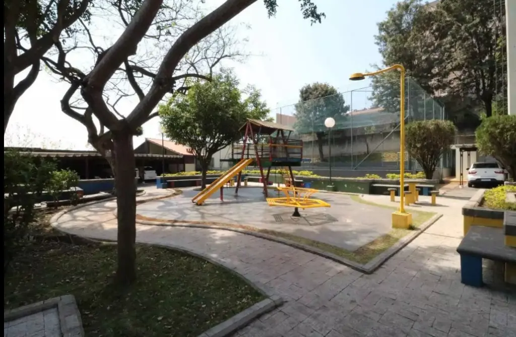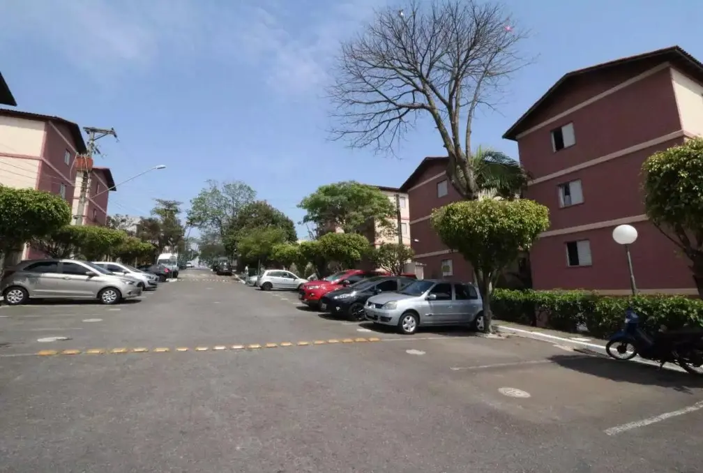 O condomínio oferece portaria 24 horas, quadra esportiva, salão de festas e playground.