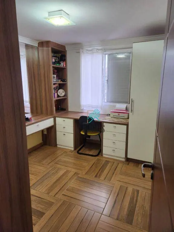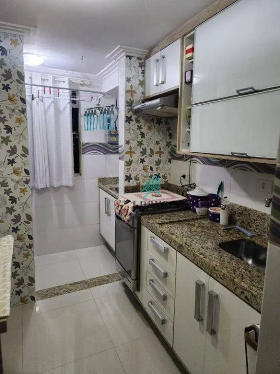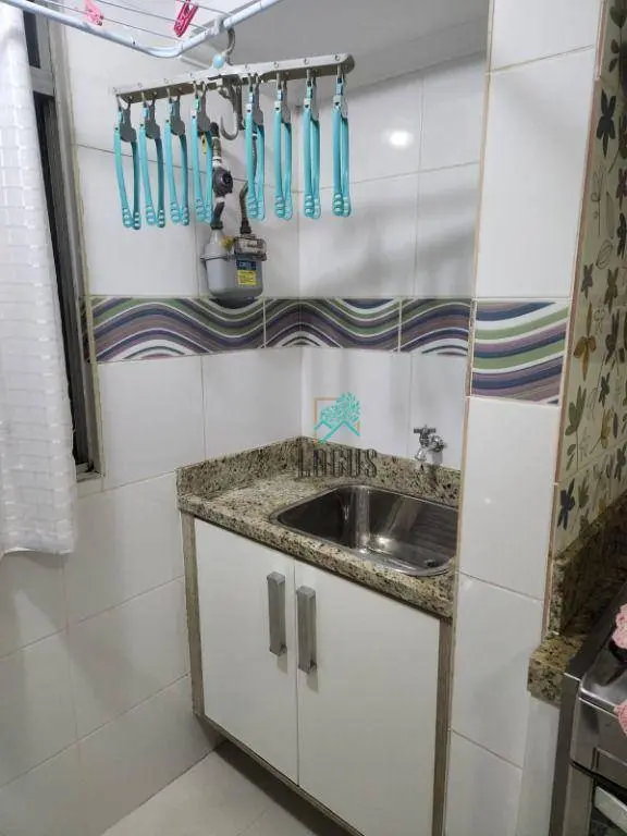 São 2 quartos no piso no porcelanato, 1 banheiro com armário, sala 2 ambientes, cozinha planejada, lavanderia com armário, 1 vaga de garagem coberta e 1 vaga descoberta.