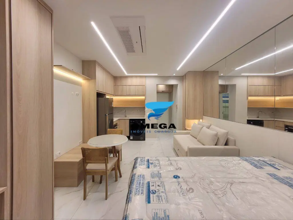 Studio aconchegante com ambientes integrados quarto, sala, cozinha e banheiro ideal para quem busca praticidade e conforto. O imóvel possui um layout funcional que otimiza o espaço e proporciona uma atmosfera moderna e agradável para morar ou veranear.