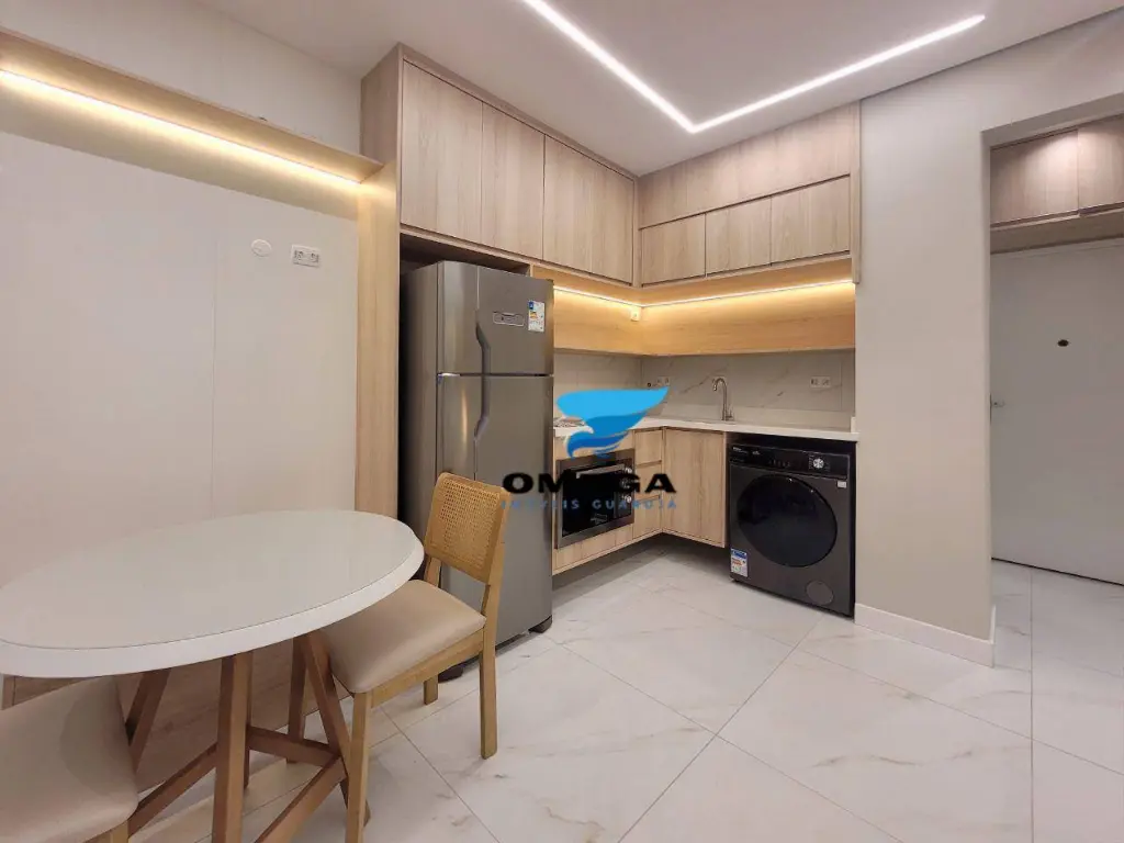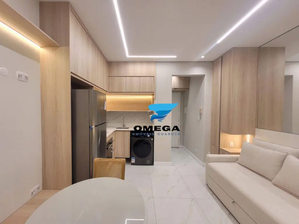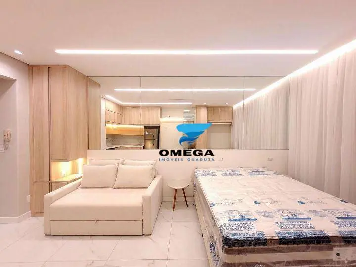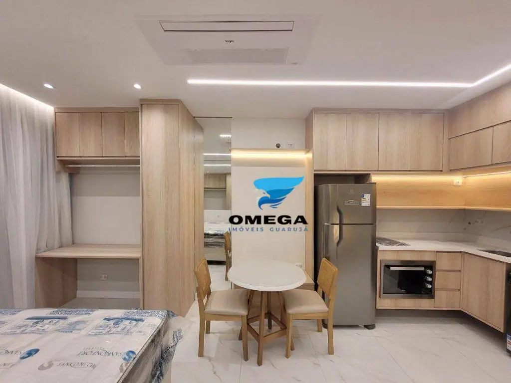 Apartamento studio finamente reformado na praia das Pitangueiras, no Guarujá SP. Claro, arejado e com ótima distribuição. Confira!
