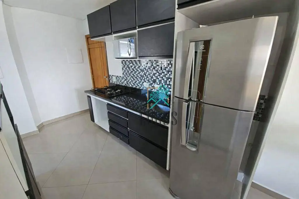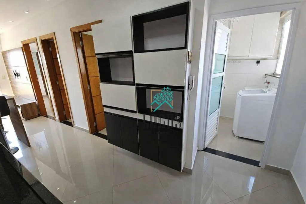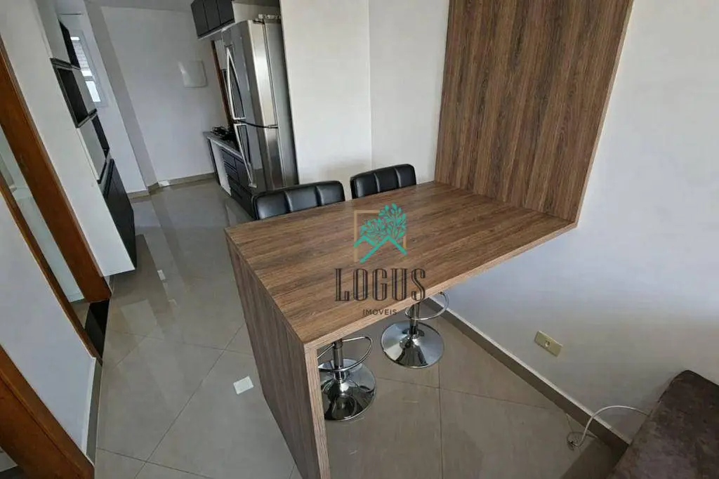 São 2 quartos planejados, 1 banheiro, sala com sofá e painel 2 ambientes integrada com a sacada, cozinha planejda com fogão, forno de embutir,geladeira, cooktop, microondas, lavanderia, 1 vaga de garagem coberta e fixa, com elevador.