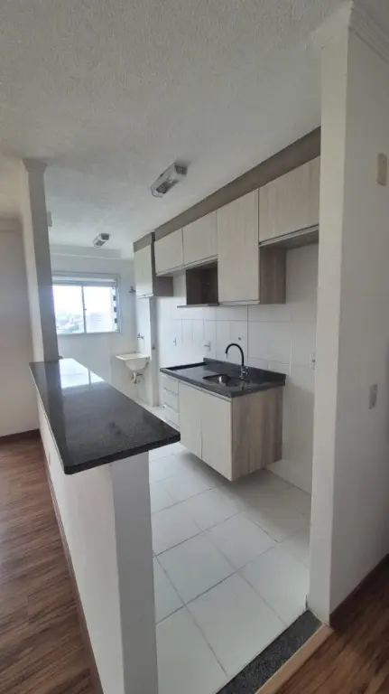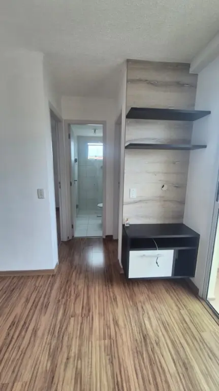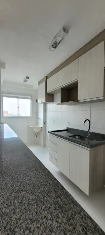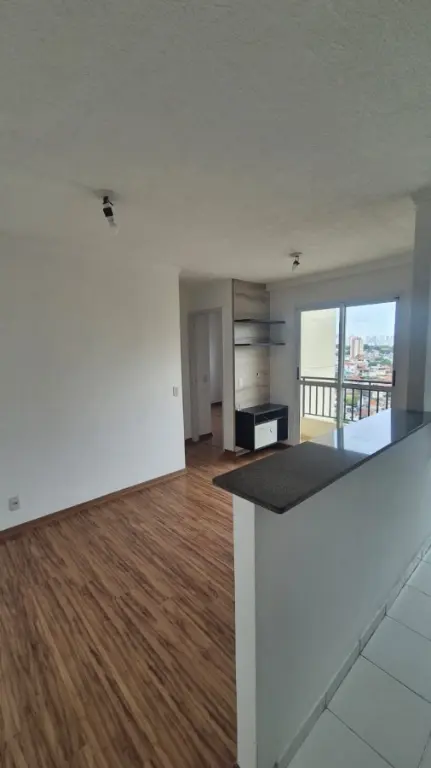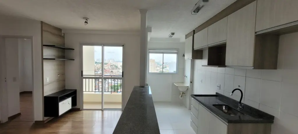 Apartamento com 2 dormitórios, sendo um com guarda roupa planejado, piso laminado, cozinha americana com armários, área de serviço, banheiro com box de vidro e gabinete, sala para dois ambientes com sacada e rack planejado, muito arejado e com uma bela vista livre, além de 1 vaga de garagem.
