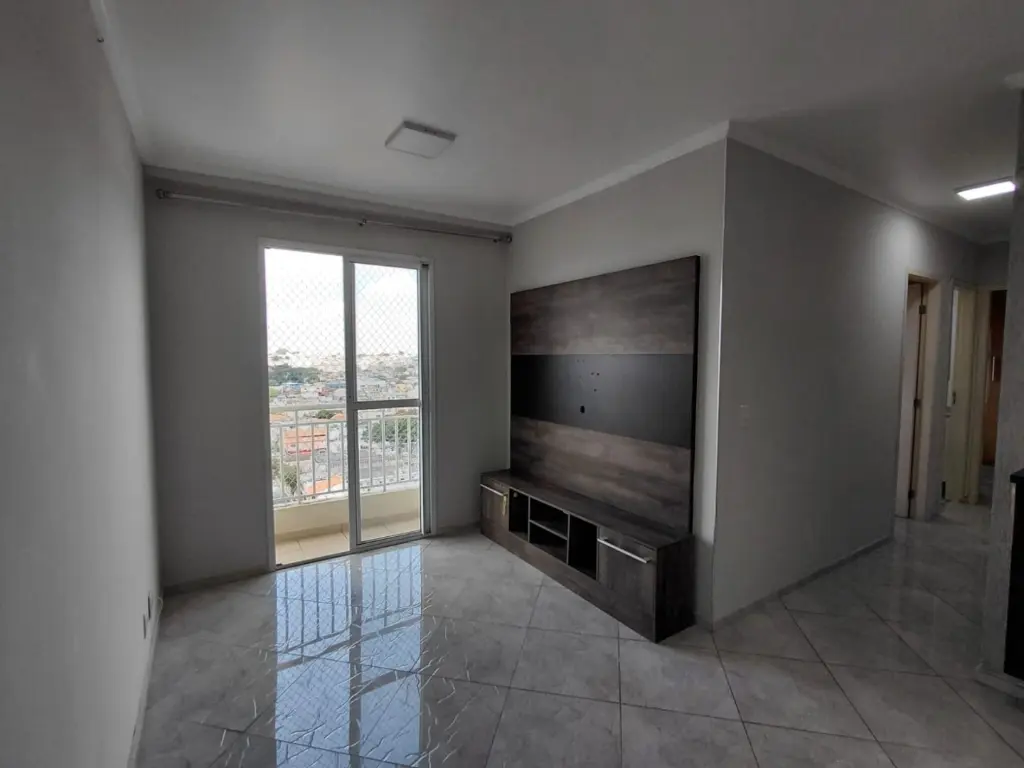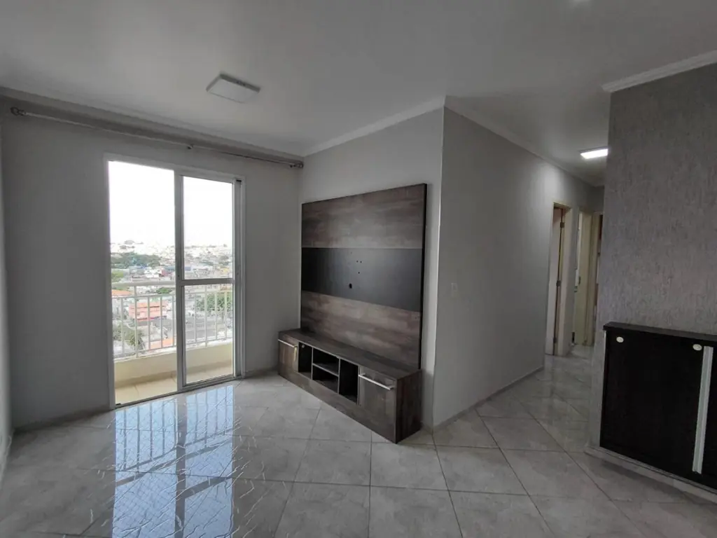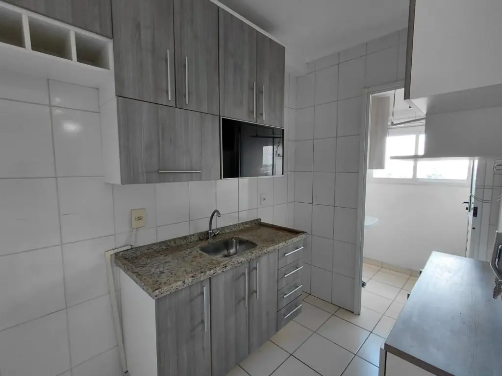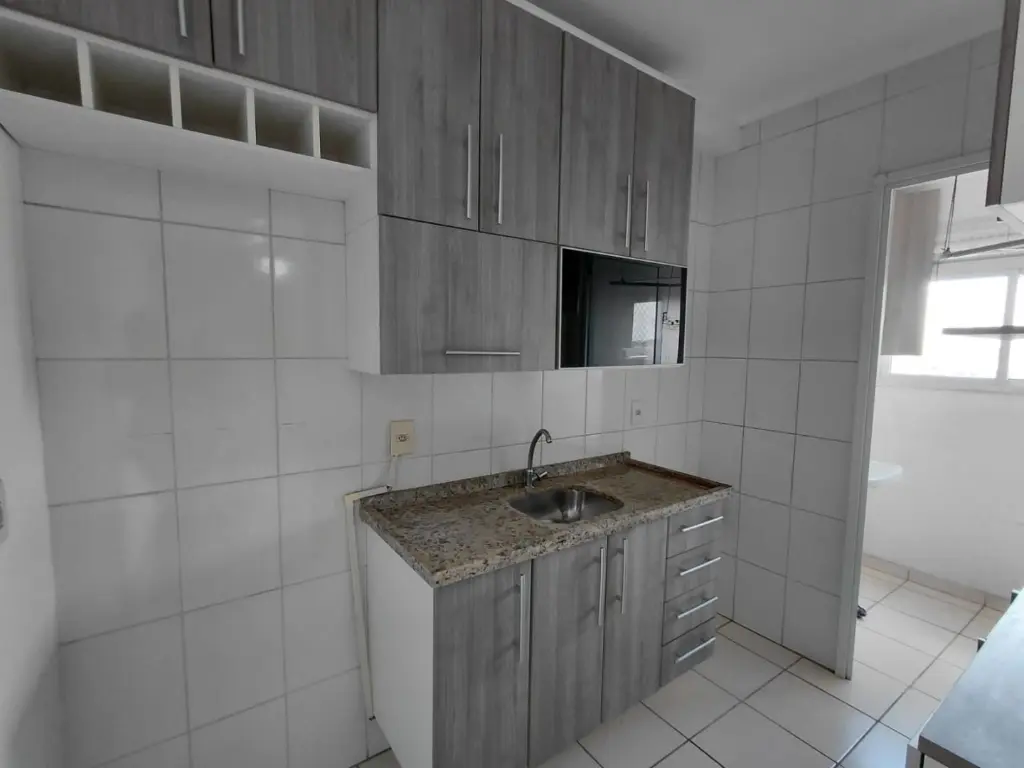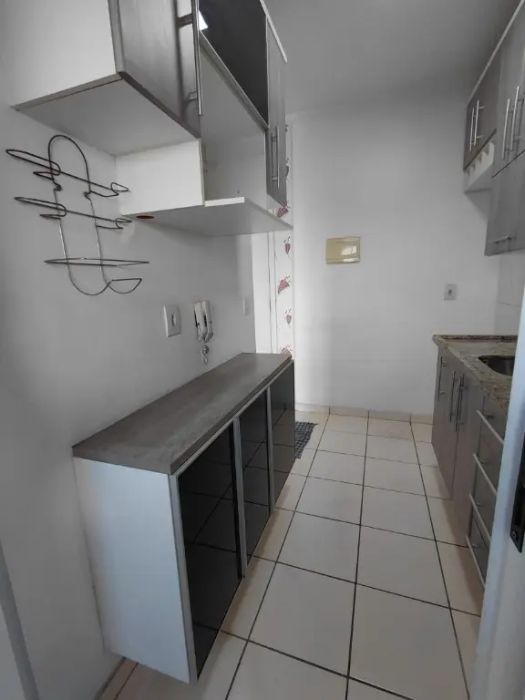 Com 2 dormitorios, sala, cozinha e banheiro.