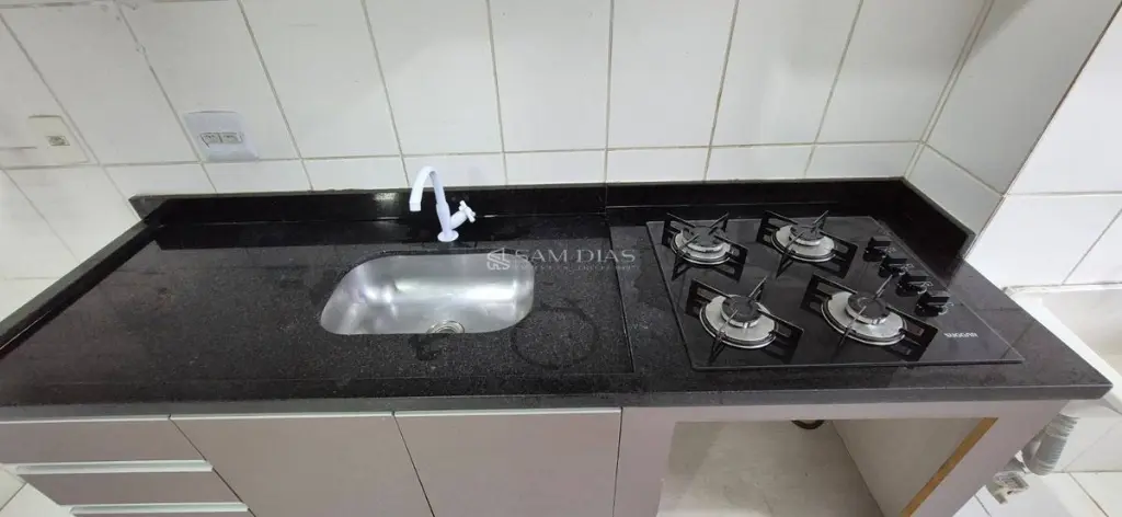 Cozinha equipada com móveis planejados e cooktop