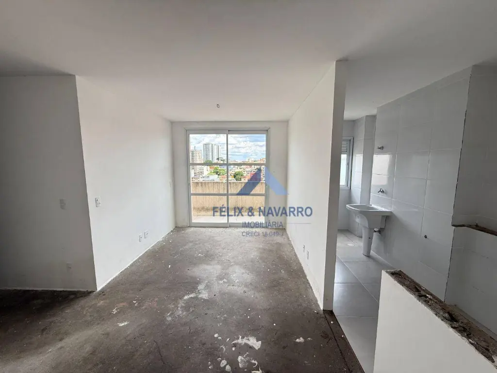 São 70 m², sendo 02 dormitórios, sala 2 ambientes, quintal (garden), cozinha americana, banheiro social e 1 vaga de garagem coberta. O apartamento é novo e está no contra-piso.