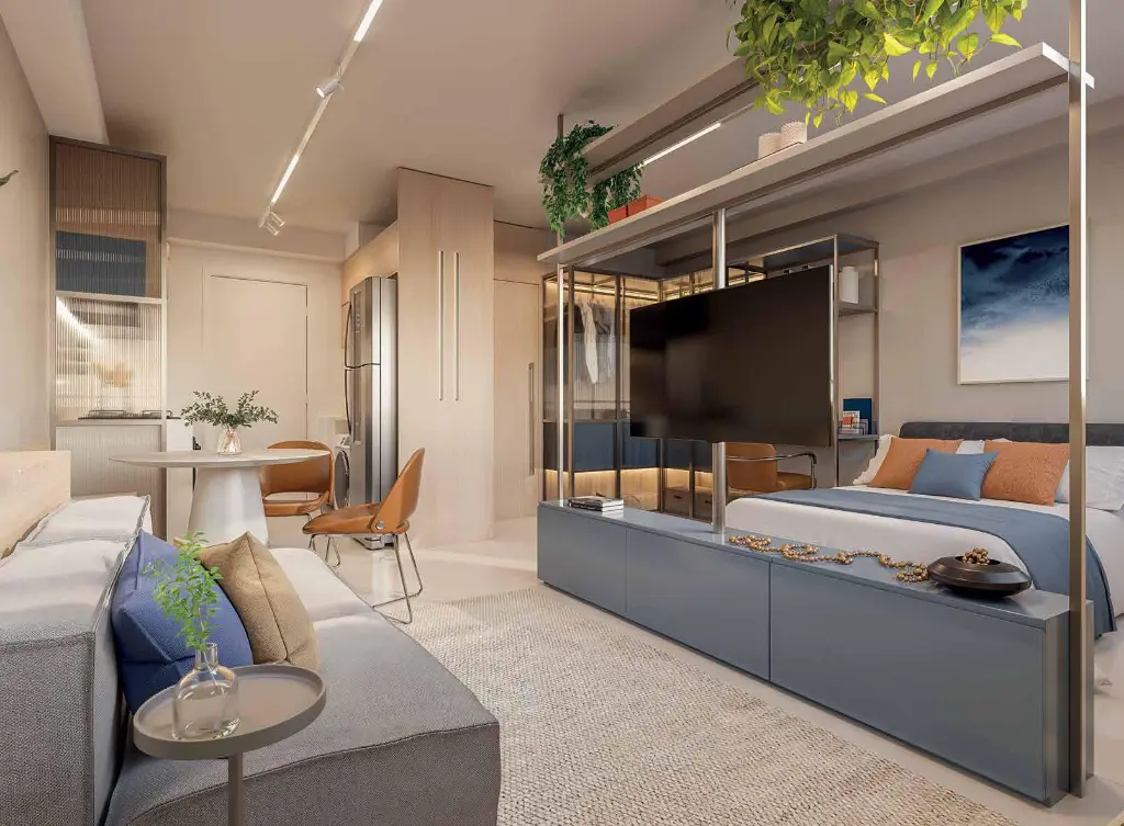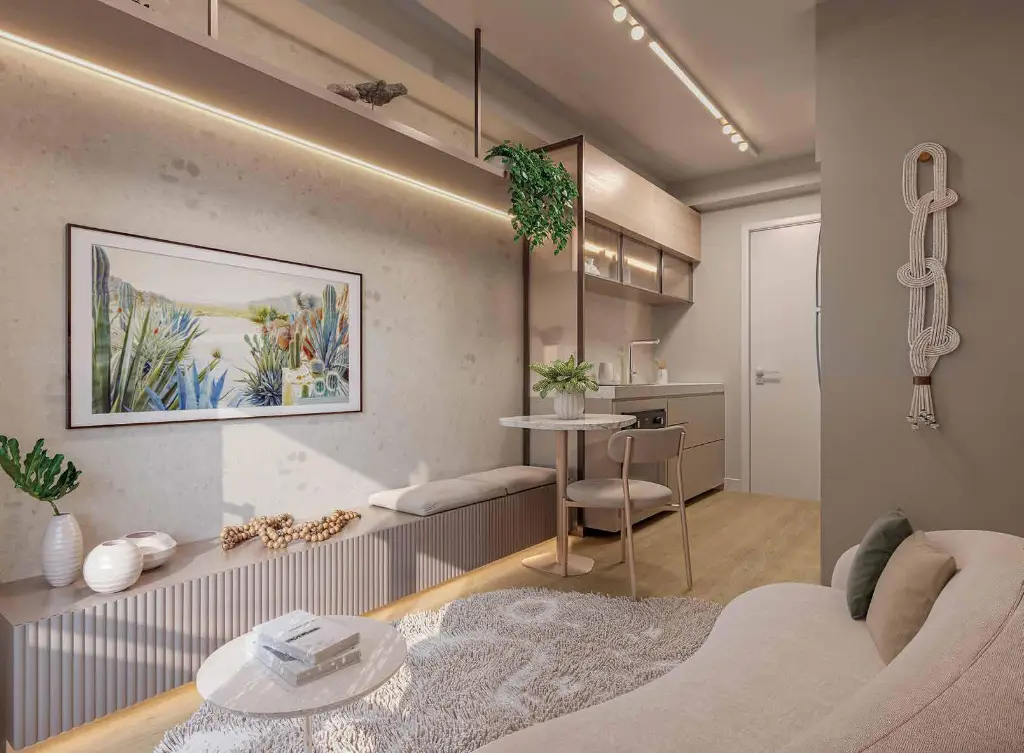 Opções de Plantas: O empreendimento oferece versatilidade para diferentes perfis, com unidades que variam de 24m² a 65m². Escolha entre Studios modernos ou apartamentos de 1 e 2 dormitórios, todos com varanda e projetados para máxima eficiência de espaço e conforto.
