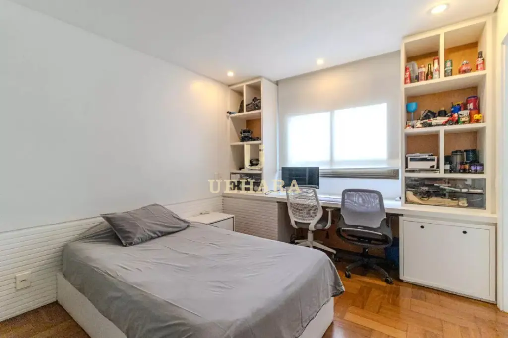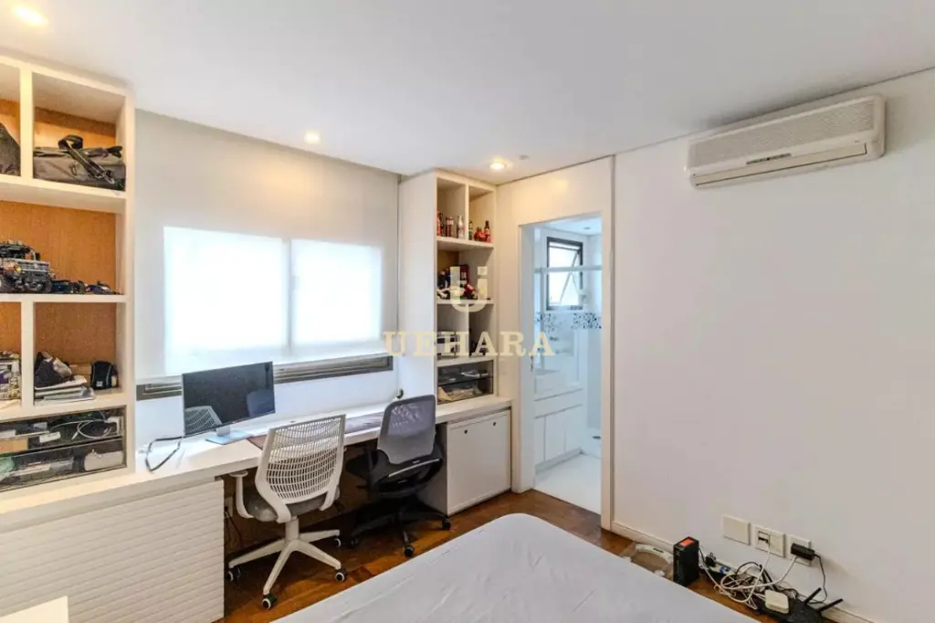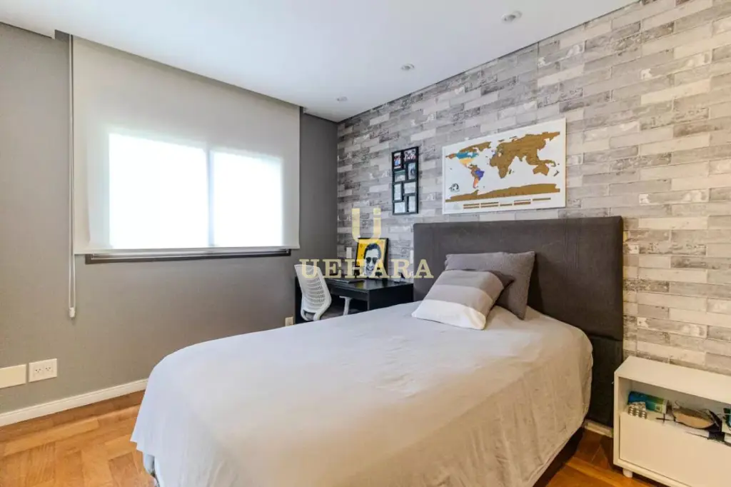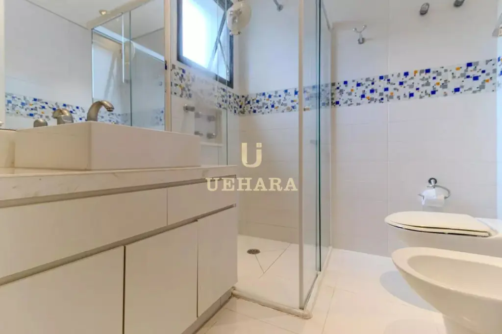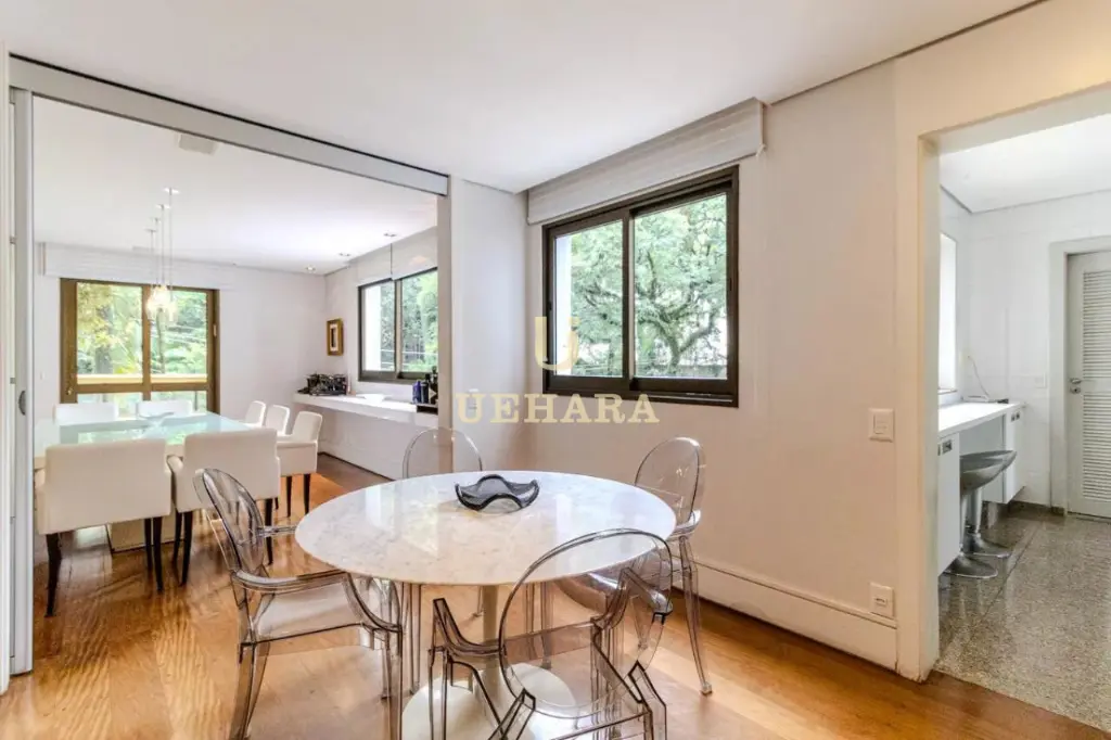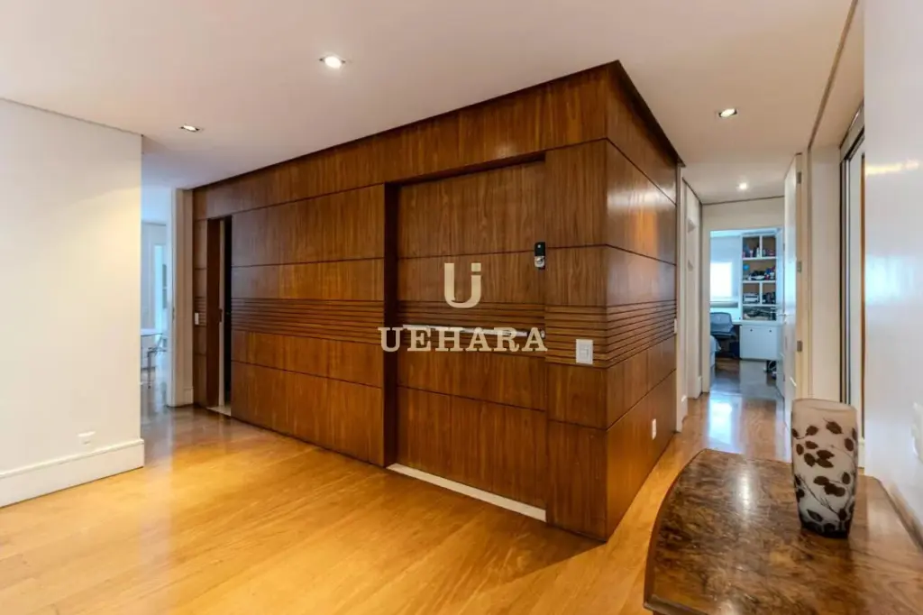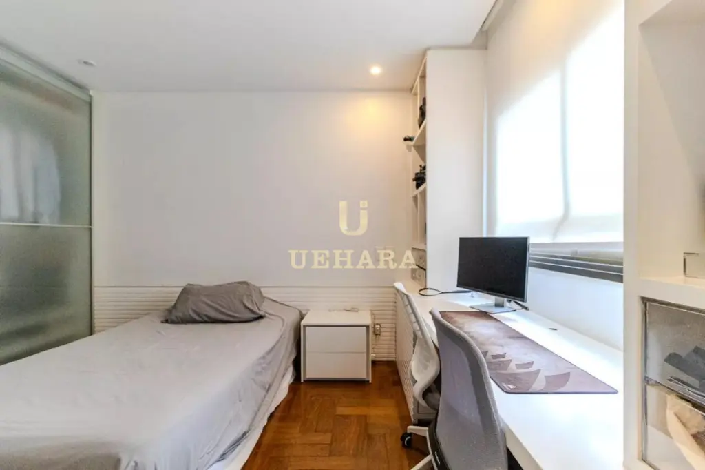 Apartamento de 303m² de muito conforto e mobiliado, com 03 dormitórios e 03 suítes, diversas salas de ambientes diferentes e aconchegantes e com varanda fechada com vidros e um jardim, cozinha e área de serviço, e 04 vagas de garagem.