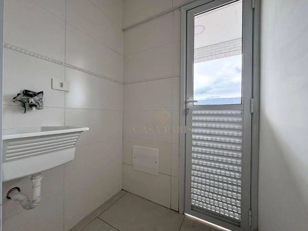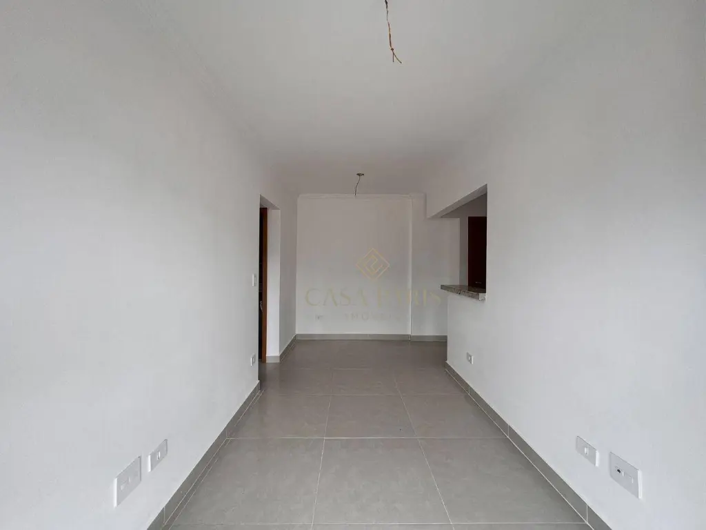 Apartamento com 1 dormitório, sala, varanda, cozinha, área de serviço, banheiro social e 1 vaga de garagem.
