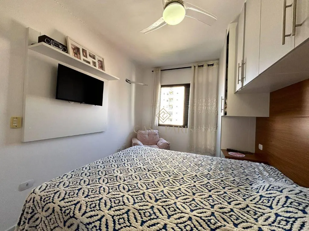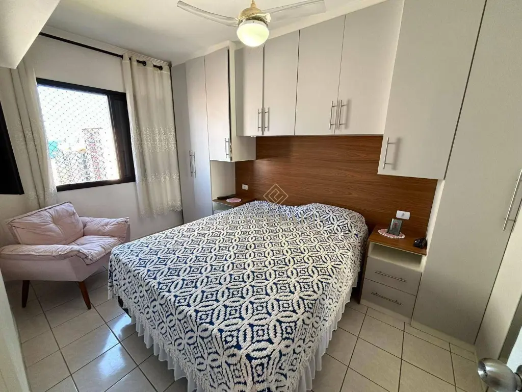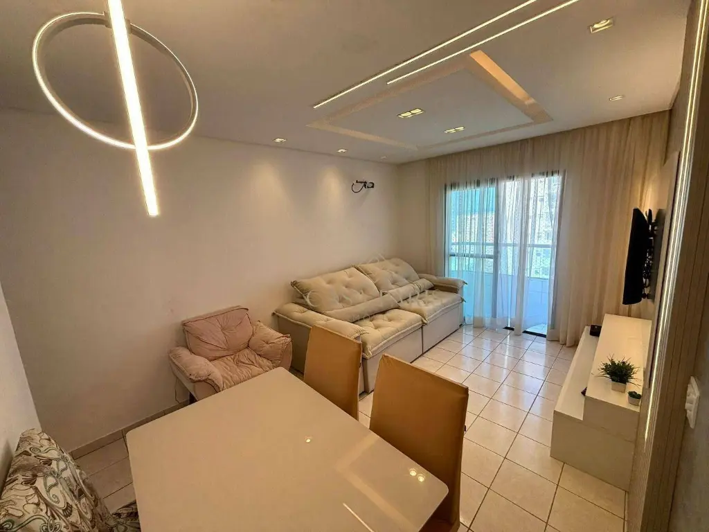 Imóvel planejado, com vista livre, 200m da praia, sala dois ambientes, cozinha com armários, área de serviço privativa, 01 quarto planejado e 01 vaga de garagem.