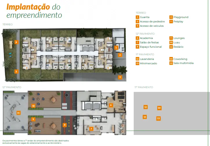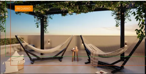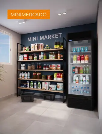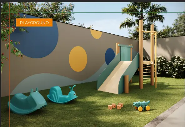 Lazer: Academia | Academia externa | Fire place | Lavanderia | Lounge | Market | Pet place | Playground | Portaria | Redário | Sala de reuniões | Salão de festas | Terraço.