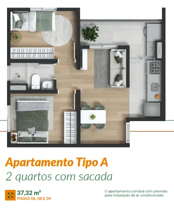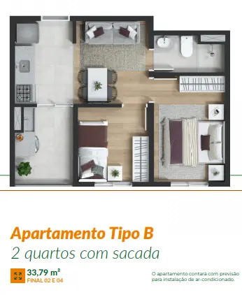 33m² a 74,8 m² | 2 Dormitórios | Sacada | 1 vaga.