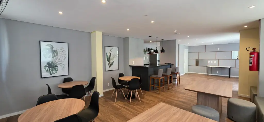 - Piscinas adulto e infantil; - Churrasqueira; - Academia; - Salão de Festas; - Mercadinho; - Brinquedoteca e Playground; - Elevador para deficiente físico; - Pet Care; - Coworking; - Portaria 24h.