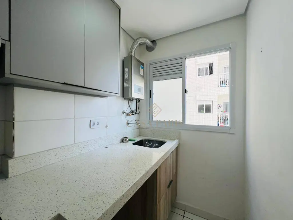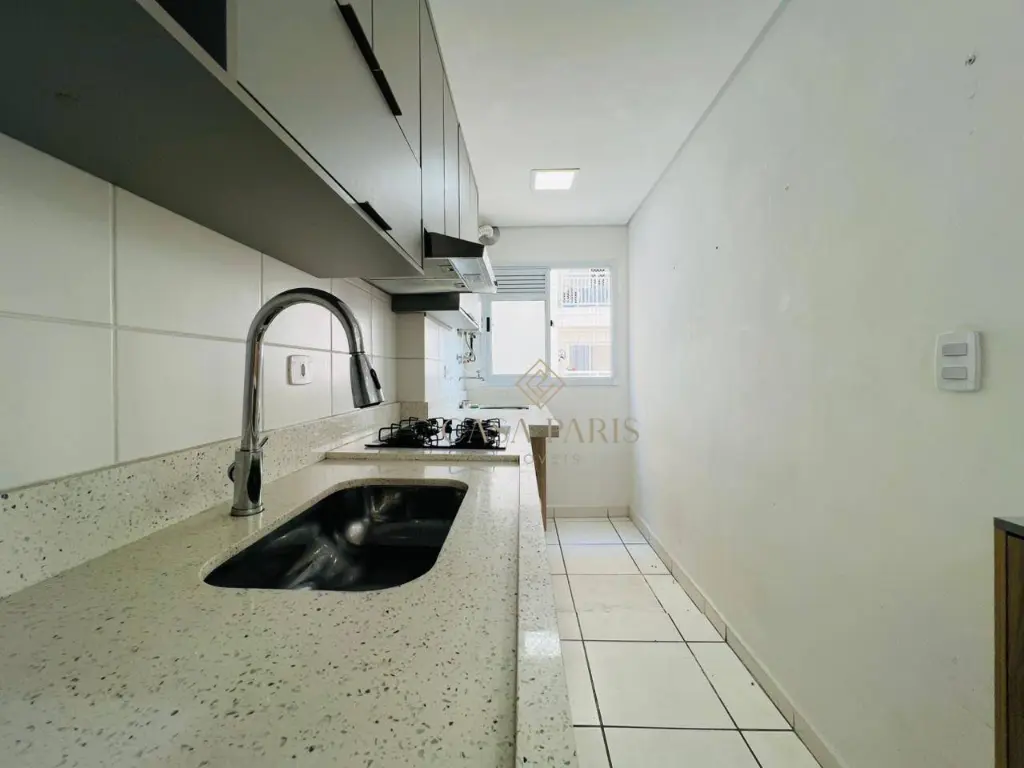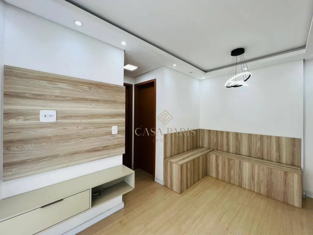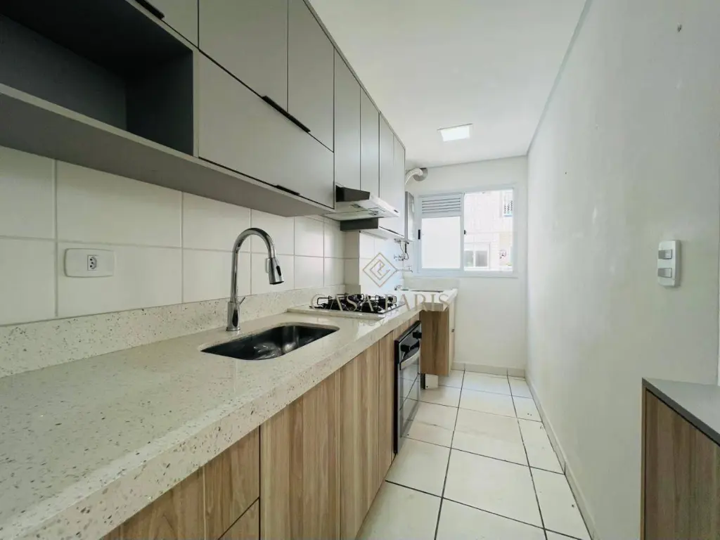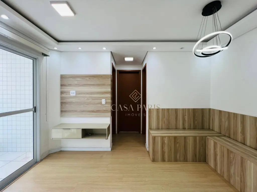 Apartamento com 2 dormitórios, varanda, sala 2 ambientes, cozinha planejada, área de serviço, banheiro e 1 vaga de garagem.