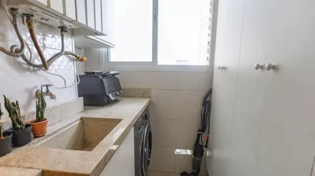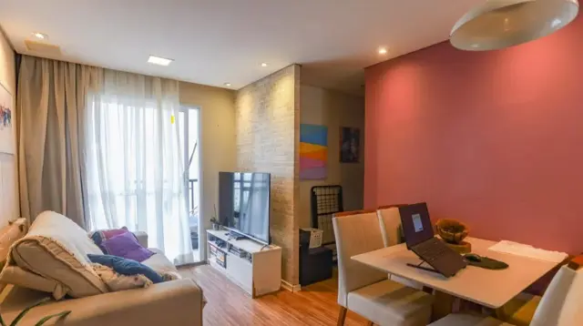 São 2 Dormitórios com armários planejados, Sala 2 ambientes com sacada e vista parcial livre, Cozinha planejada, área de serviço e 1 vaga de garagem.