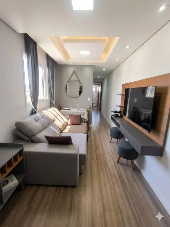 Apartamento sem condomínio com 54m² de área útil. Possui 2 dormitórios sendo 1 suíte, banheiro social, sala, cozinha planejada, lavanderia e 1 vaga de garagem.