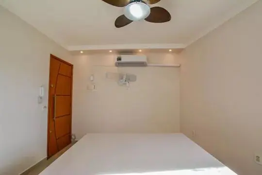 ? Ventiladores de teto na sala (estilo decorativo) e nos quartos (estilo simples)