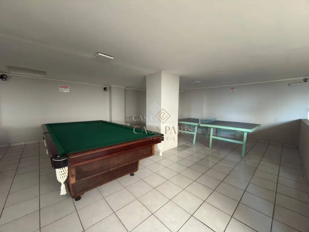 O condomínio oferece lazer completo com piscina, salão de jogos e salão de festas.