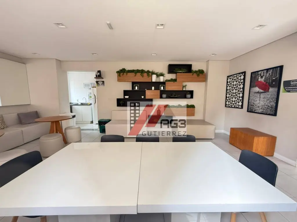 O condomínio é super moderno e conta com portaria e segurança 24 horas, além de uma excelente área de lazer, tanto com a parte reservada no rooftop com um solarium e uma área gourmet com churrasqueira, além de piscina, uma academia bem equipada, salão de festas, quadra, salão de jogos, brinquedoteca e bicicletário.