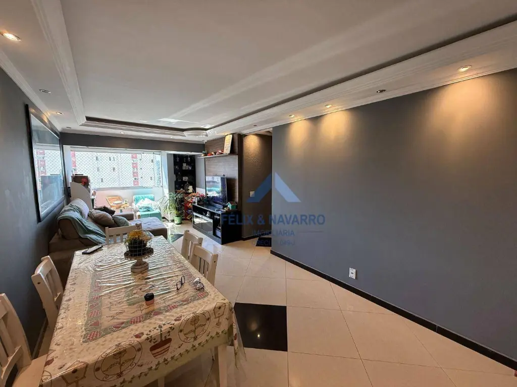 São 70 m2, sendo 03 quartos com armários (1 suíte), sala 2 ambientes, sacada integrada com vista livre, cozinha (com armários, forno e cooktop), lavanderia, 2 banheiros e 1 vaga de garagem individual.