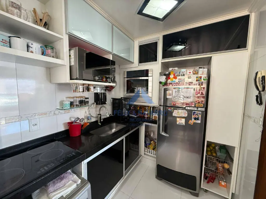 O condomínio possui lazer completo com piscinas, academia, salão de festas, churrasqueira, salão de jogos, playground, quadras, mini mercado e portaria 24 horas.