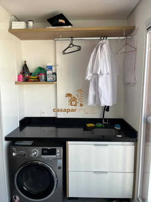 A cozinha americana, com móveis planejados, é perfeita para quem gosta de praticidade e estilo, e a área de serviço, que conta com bancada em mármore, agrega ainda mais funcionalidade ao espaço.