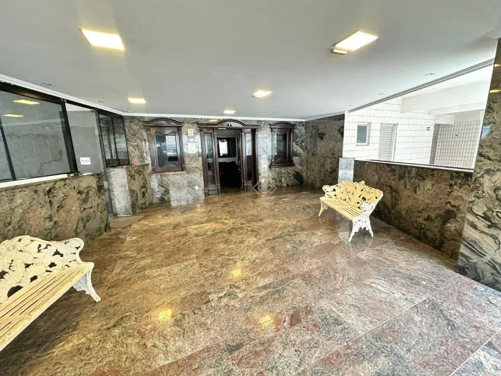 Apartamento de 82m² com 02 dormitórios, sala dois ambientes, sacada, cozinha, área de serviço, 01 lavabo, 01 banheiro social e 01 vaga de garagem.